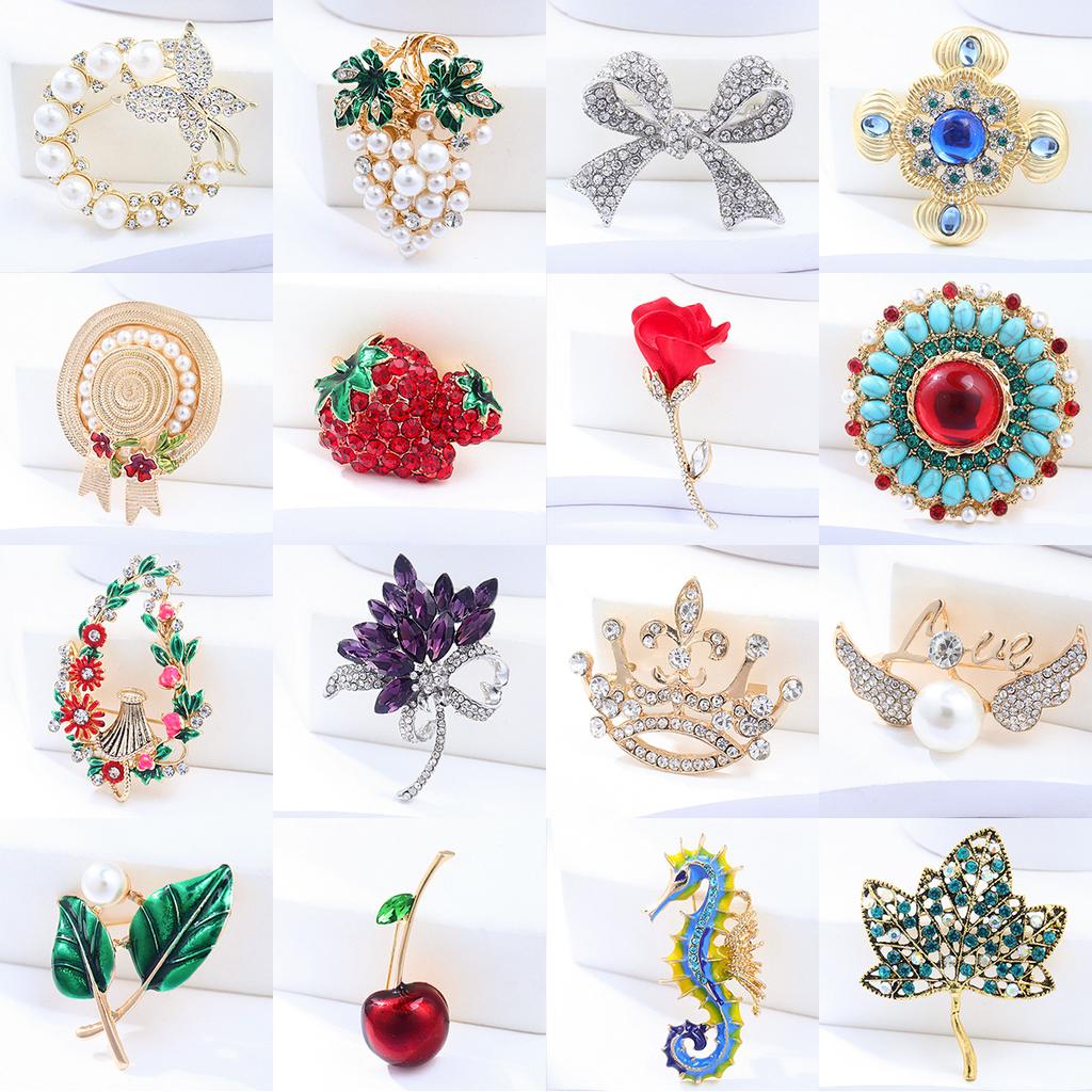 Vintage Fashion Brooch Niche High-End Sense Rhinestone Personalized Alloy Crown Corsage Bow Pin Accessories