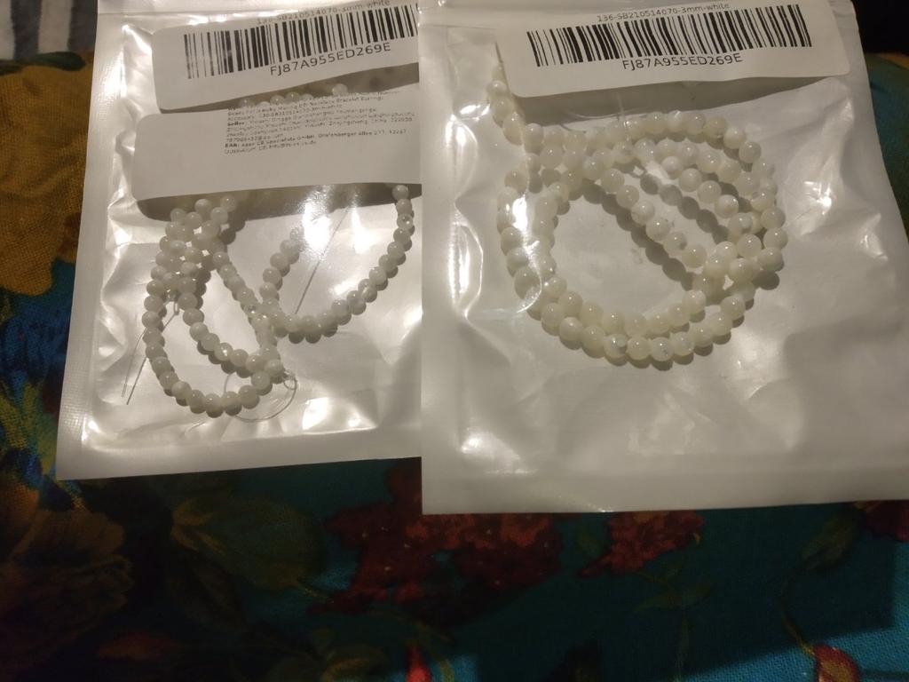 Already bought them. Beautiful. Lots of pearlescent inclusions. The non-pearlescent areas glow. I can't understand why, when you order two identical items, you get a package with 3 and 4 mm beads? If you pay attention, both packages say 3 mm.