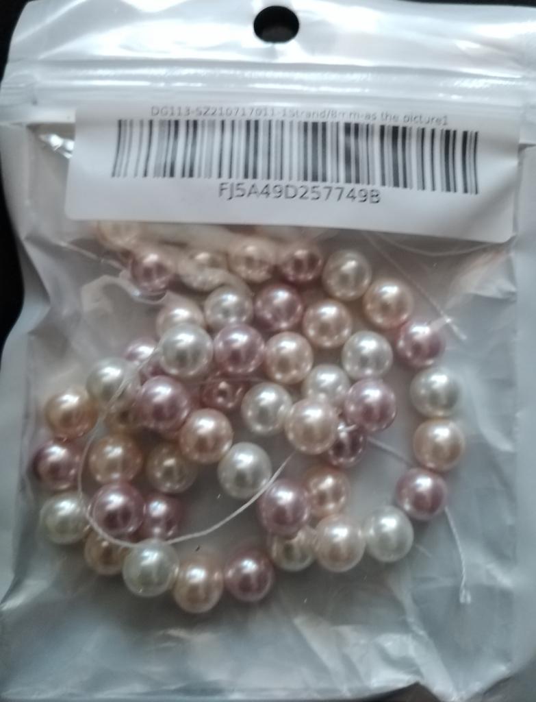 Received the pearl beads. The photos do not match in color - they are yellowish and have little nacre. Disappointed with the purchase.