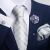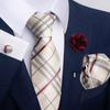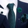 The set includes tie, square scarf, cufflinks, corsage.