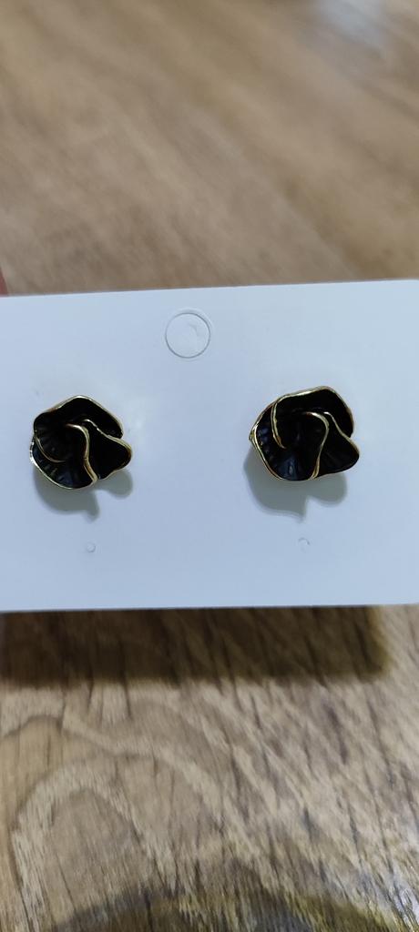 Black Flower Stud Earrings for Women Folded Unique Design Enamel Multi-layers Floral Small Earrings Fashion Jewelry