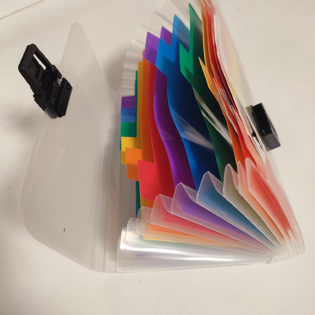 A set of mini-files of A6 format, rainbow colors, which close with a clasp, like a "briefcase". Exactly like in the photo when ordering