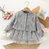 Girls Spring and Autumn Elegant and Cute Set Middle and Small Children Long Sleeve Pullover Sweater + Short Skirt Two Piece Set