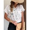 YYFS Women's Fashion Casual Summer Spring Flower Pattern Print Short Sleeve V-Neck Blouses & Shirts