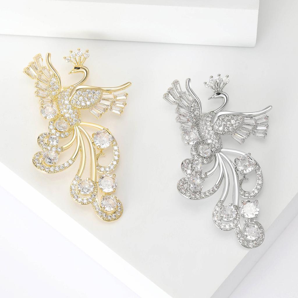 Luxury Copper Zircon Diamond Phoenix Brooch Niche High Sense Women'S Clothing Accessories Corsage Animal Pin