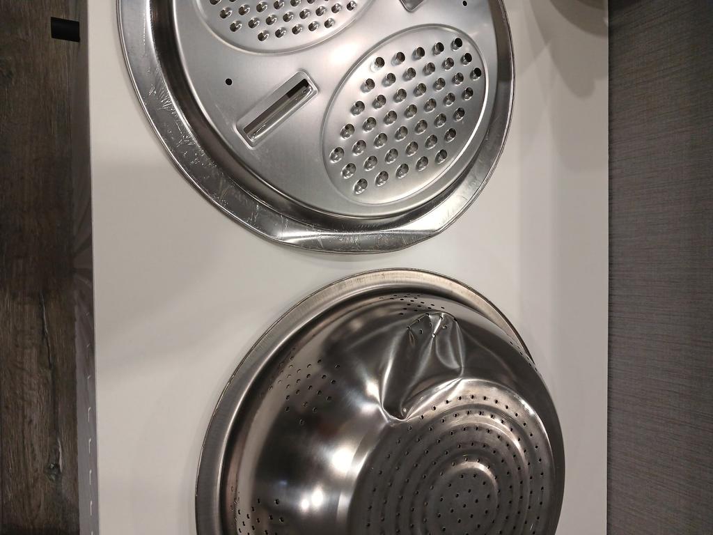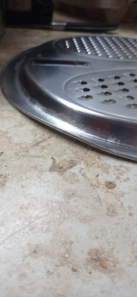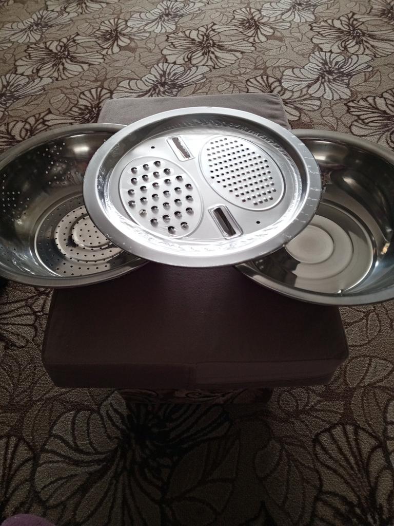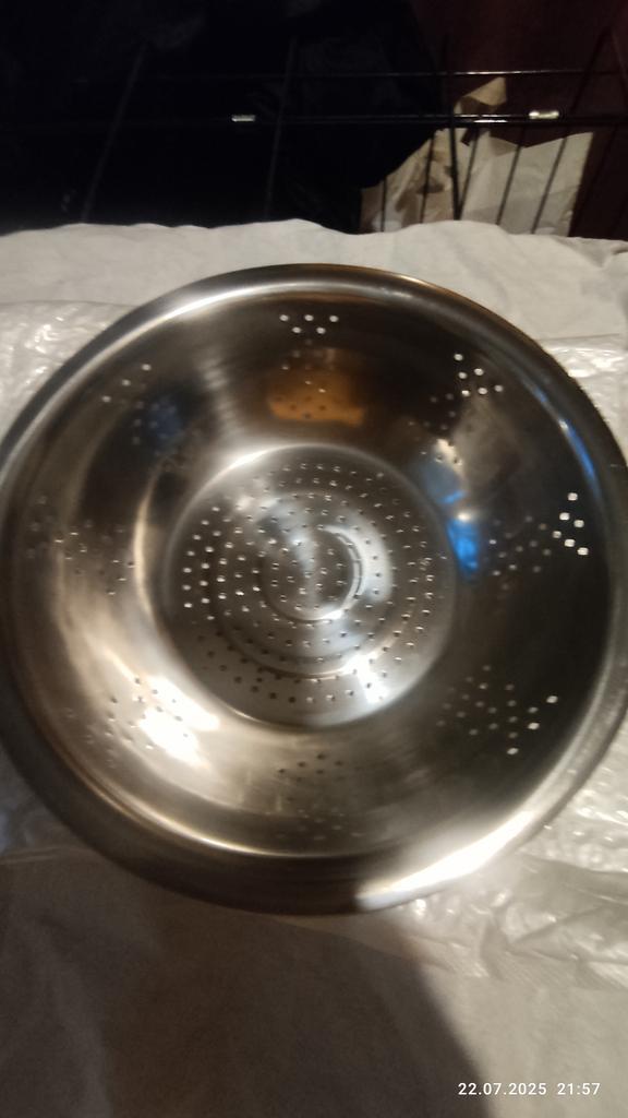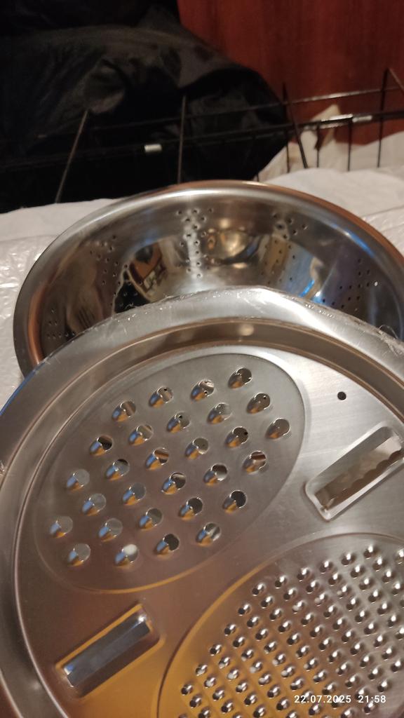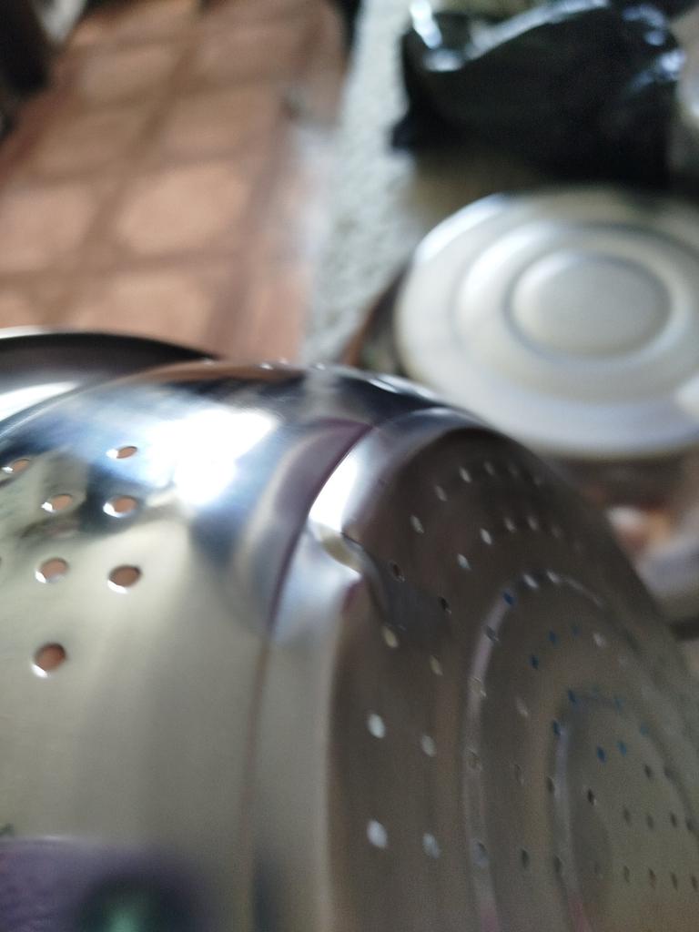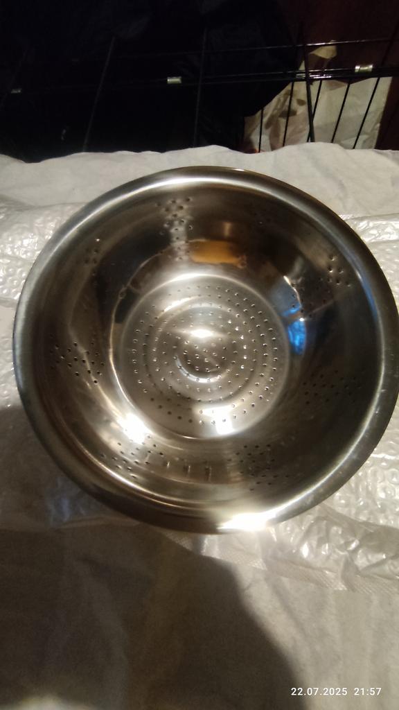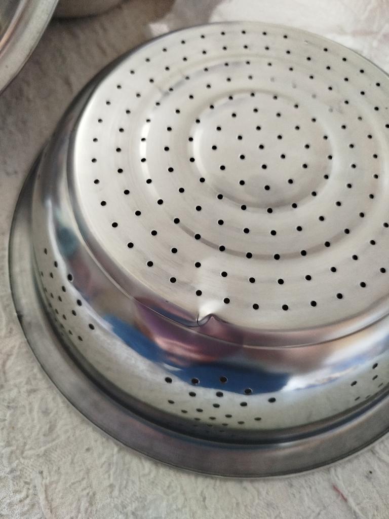 The item arrived with an incomplete set. There is no sieve, although it is shown in the picture. The dish itself is damaged with dents, and there are cracks along the edges of the dents. It's a pity that returns cannot be made abroad.