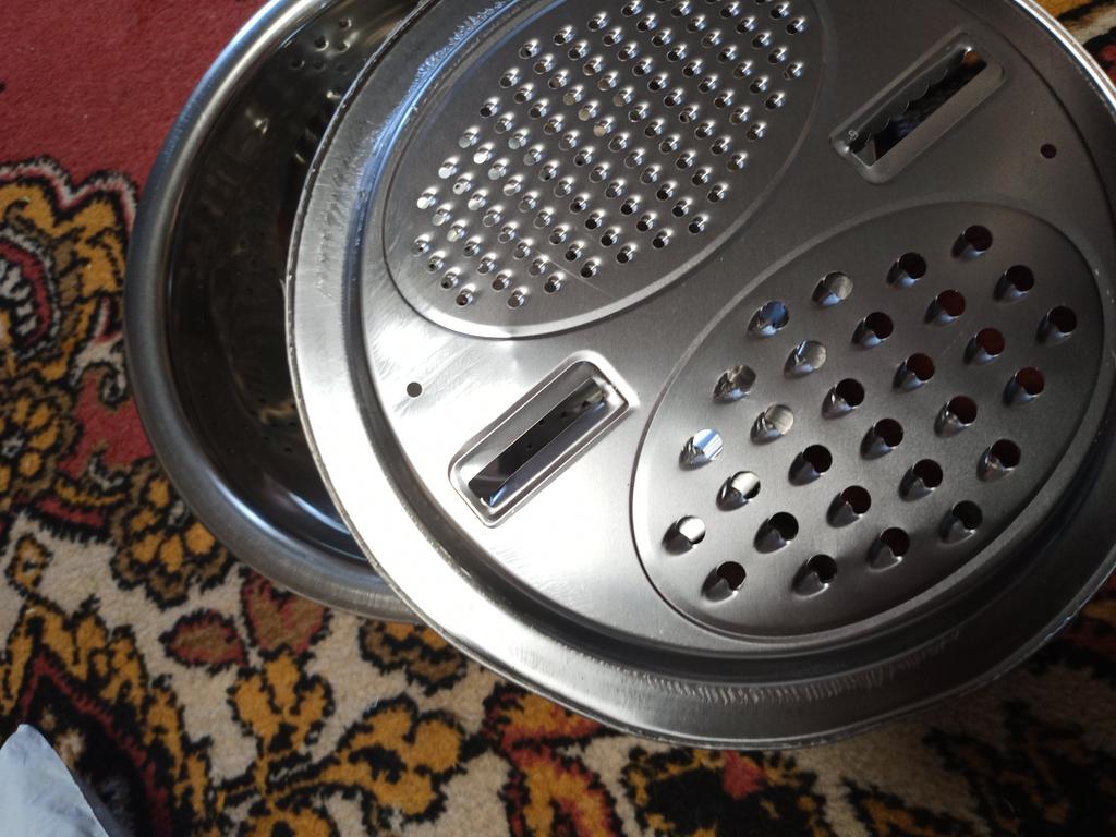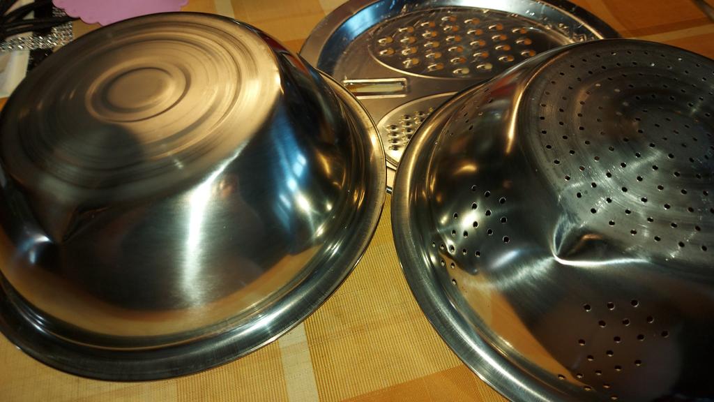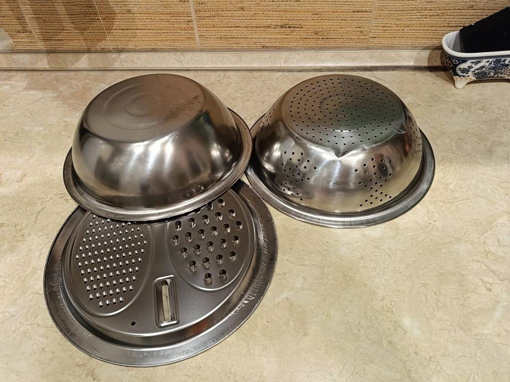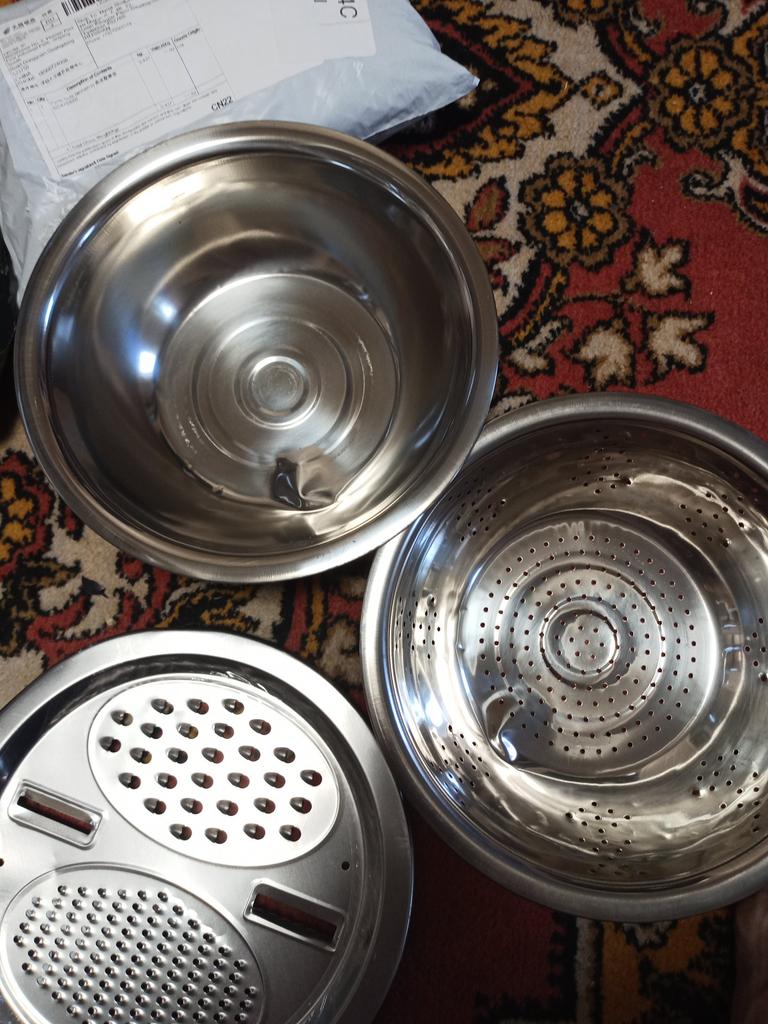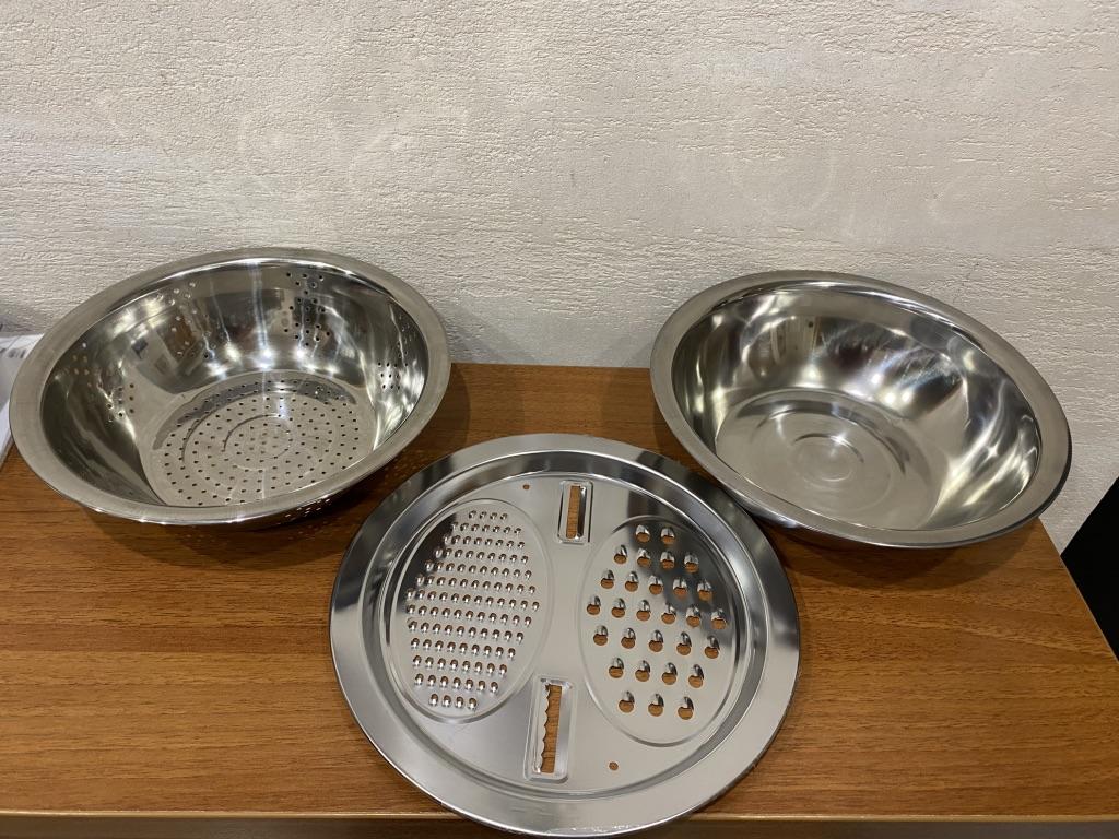 Convenient bowl and colander. Graters are sharp. Don't forget to remove the thin film from the grater beforehandπ. I didn't notice it at first.