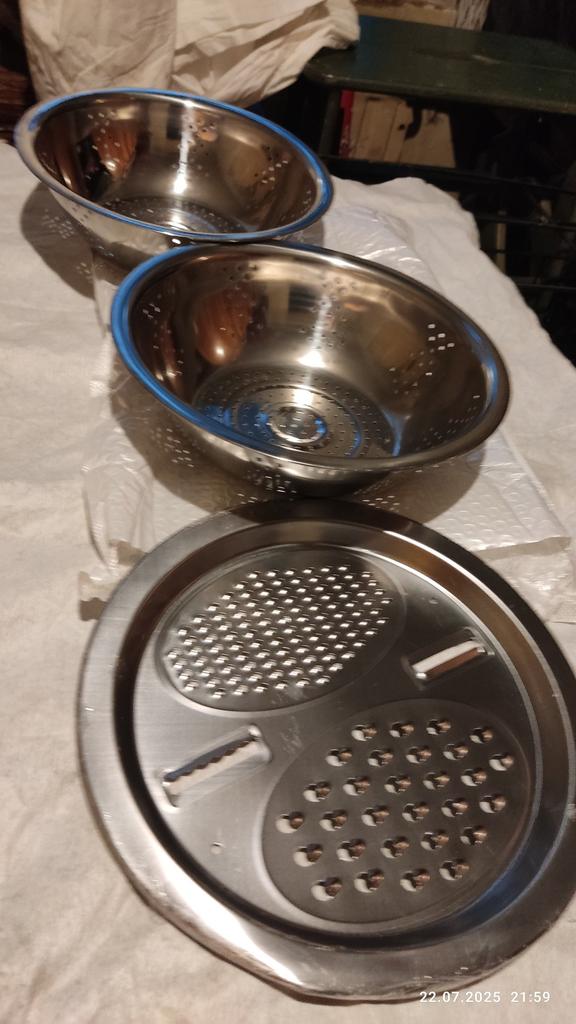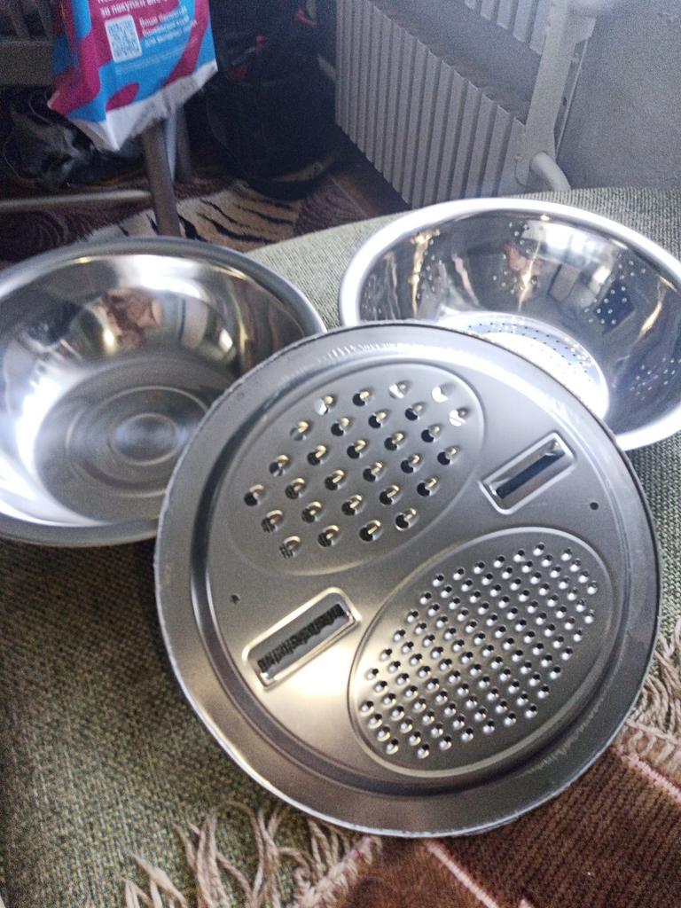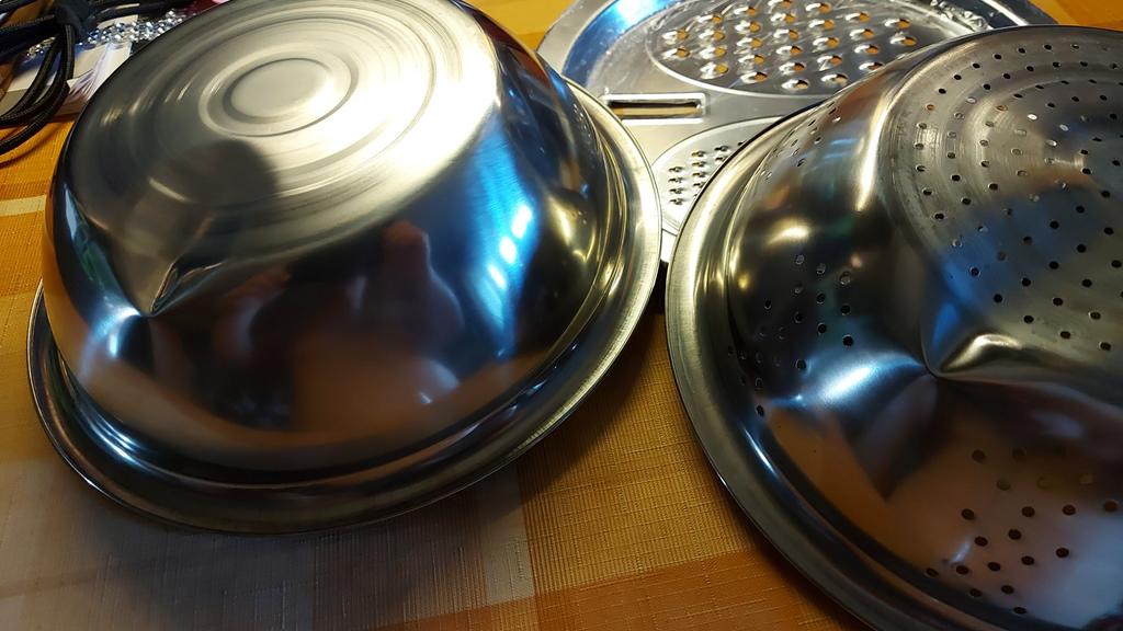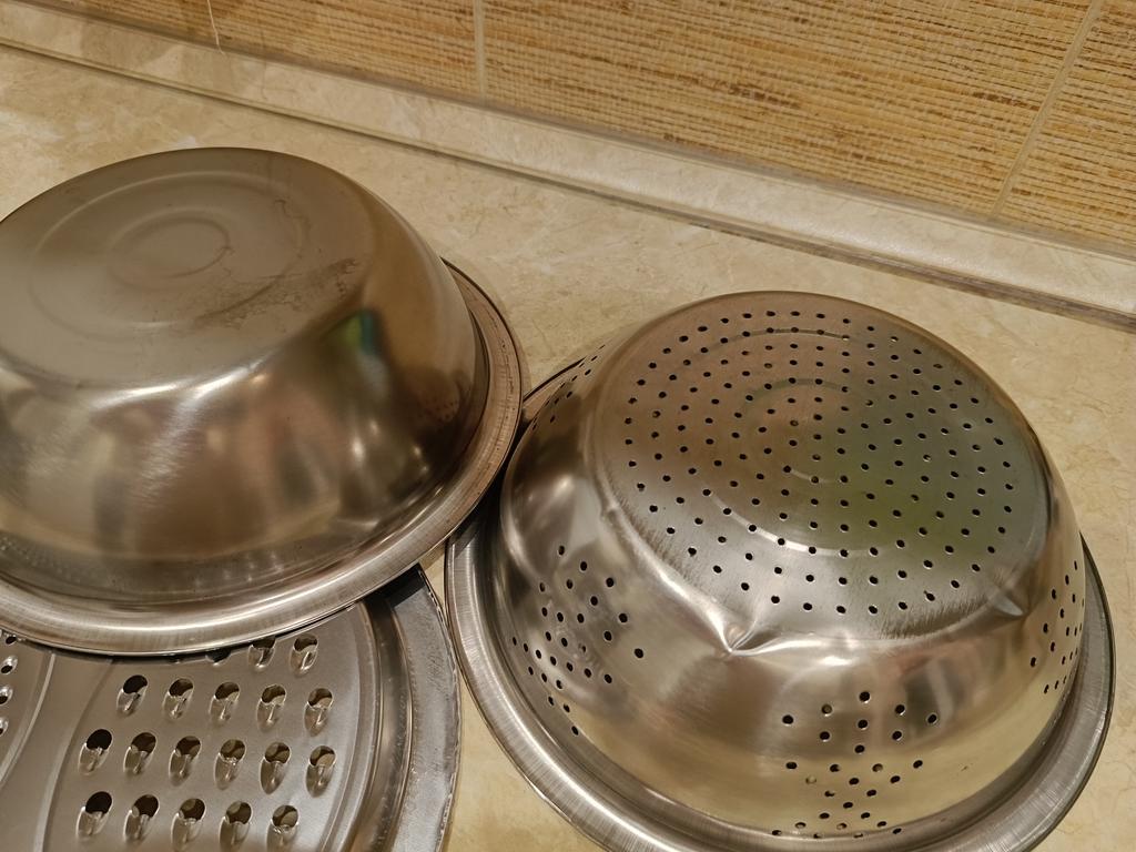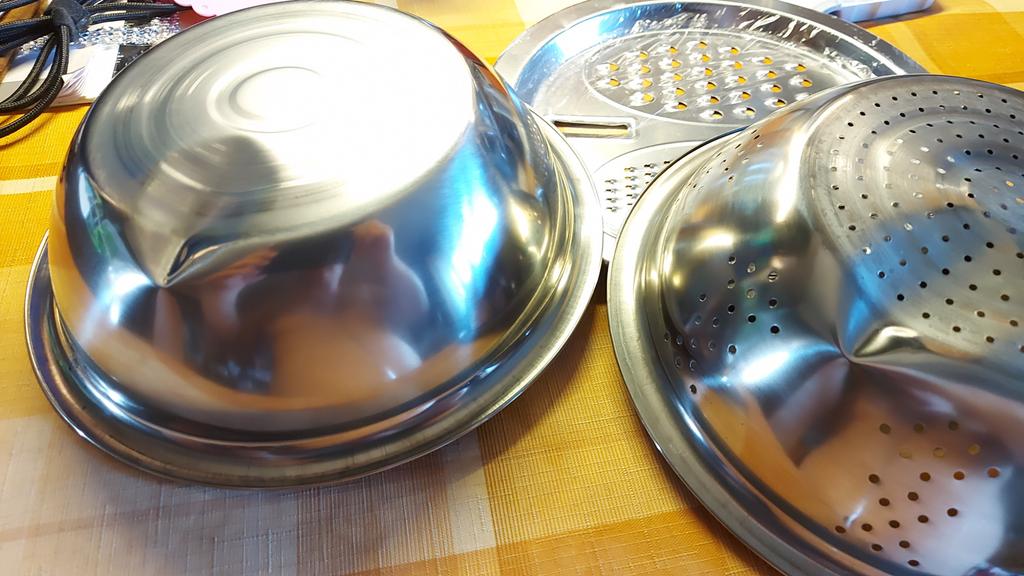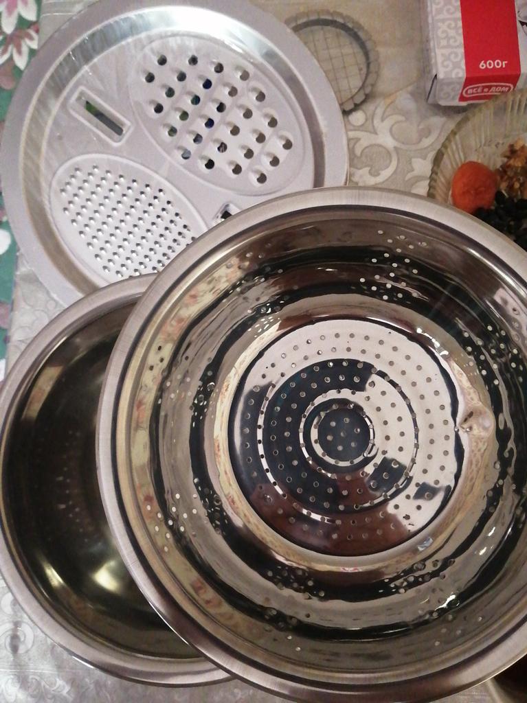 Convenient bowl and colander. Graters are sharp. Don't forget to remove the thin film from the grater beforehandπ. I didn't notice it at first.