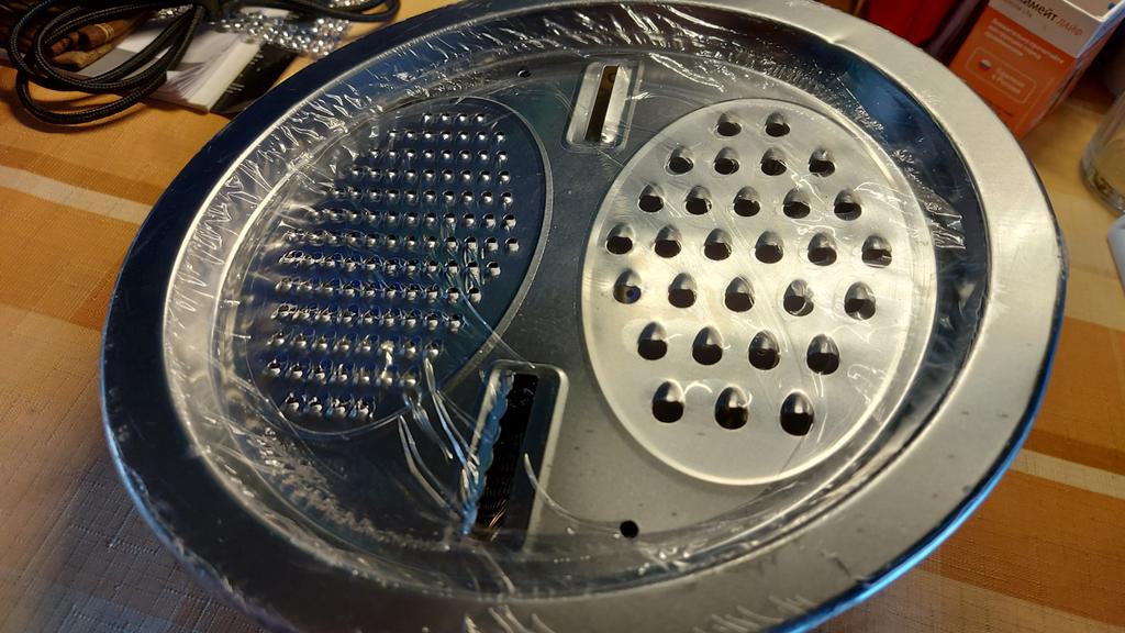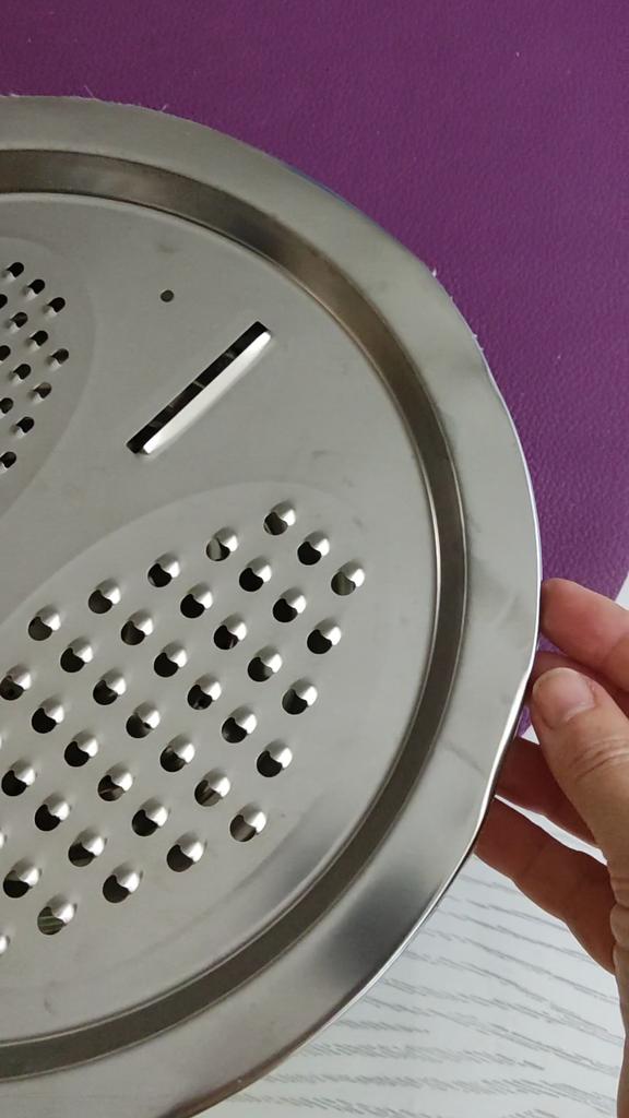 I give it a five for the idea, the execution is not very good, because the metal is very thin, it's already bent. It slides on the table. If you make something like this properly, you can throw away all the previous graters!