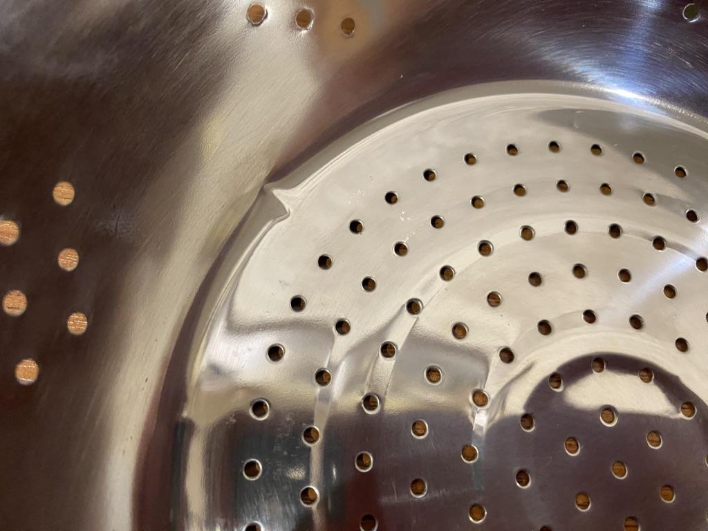 Missing the strainer also was bent on one corner of the greater not very happy with it at all.