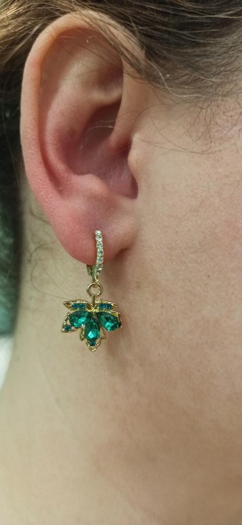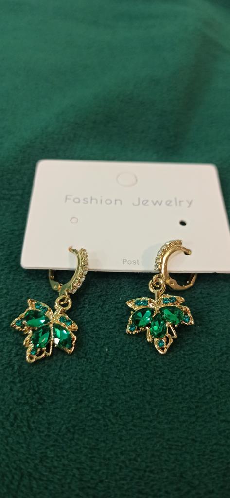 New Fashion Green Crystal Maple Leaf Drop Earrings for Women Korea Elegant Temperament Zircon Earrings Wedding Jewelry Party