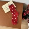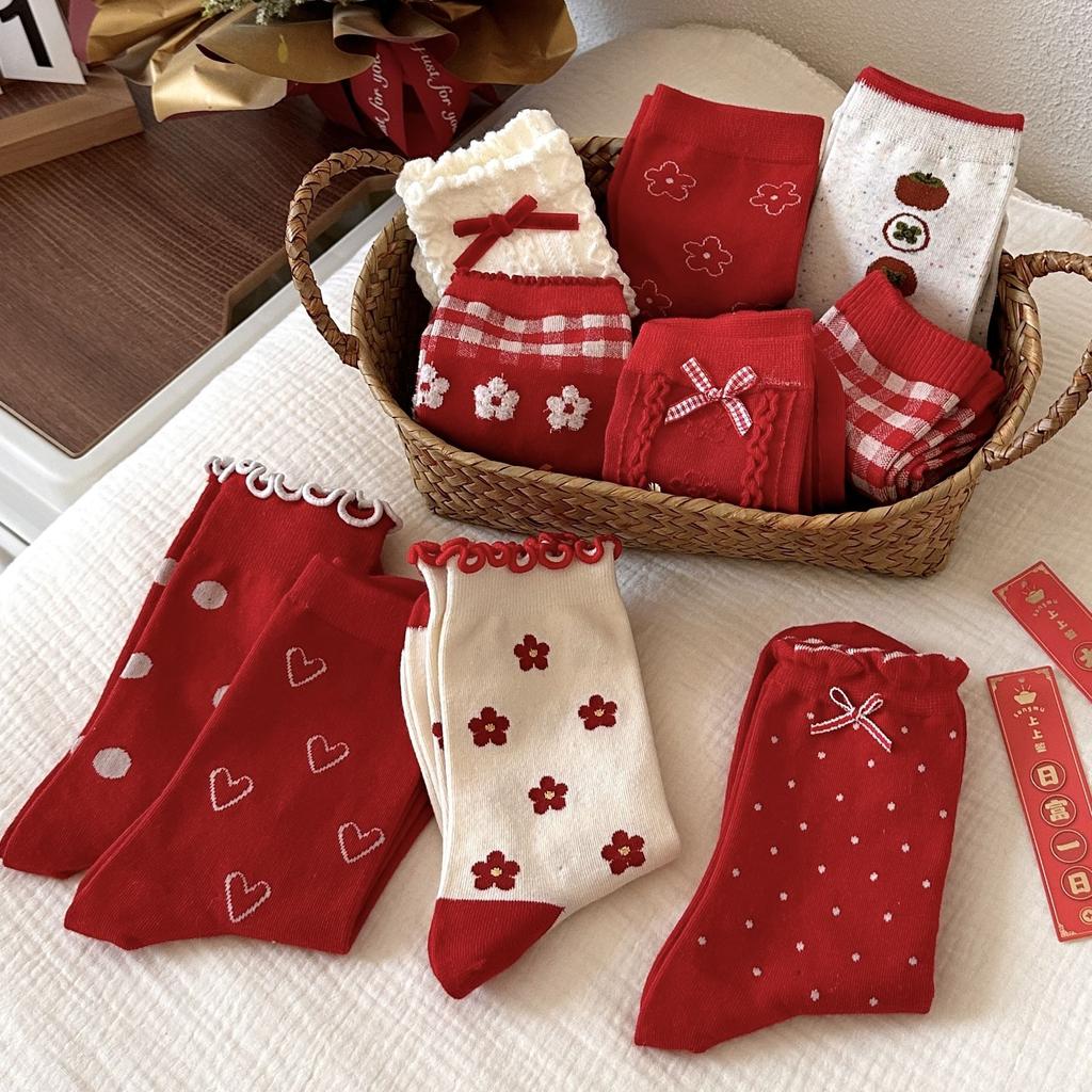 Sign On The Birth Year Big Red New Year'S Socks Female Mori Bow Small Flower Love Women'S Cotton Socks Medium Tube Socks