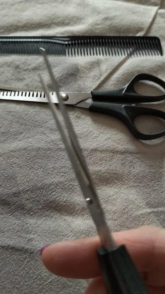 When cutting, the tips of the scissors catch the hair (do not cut)