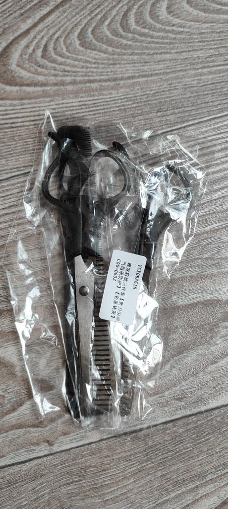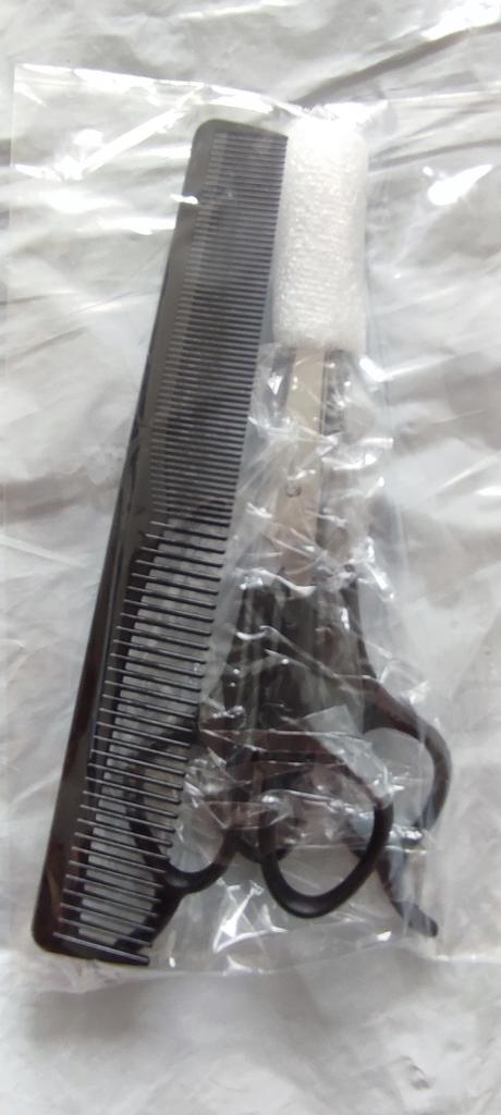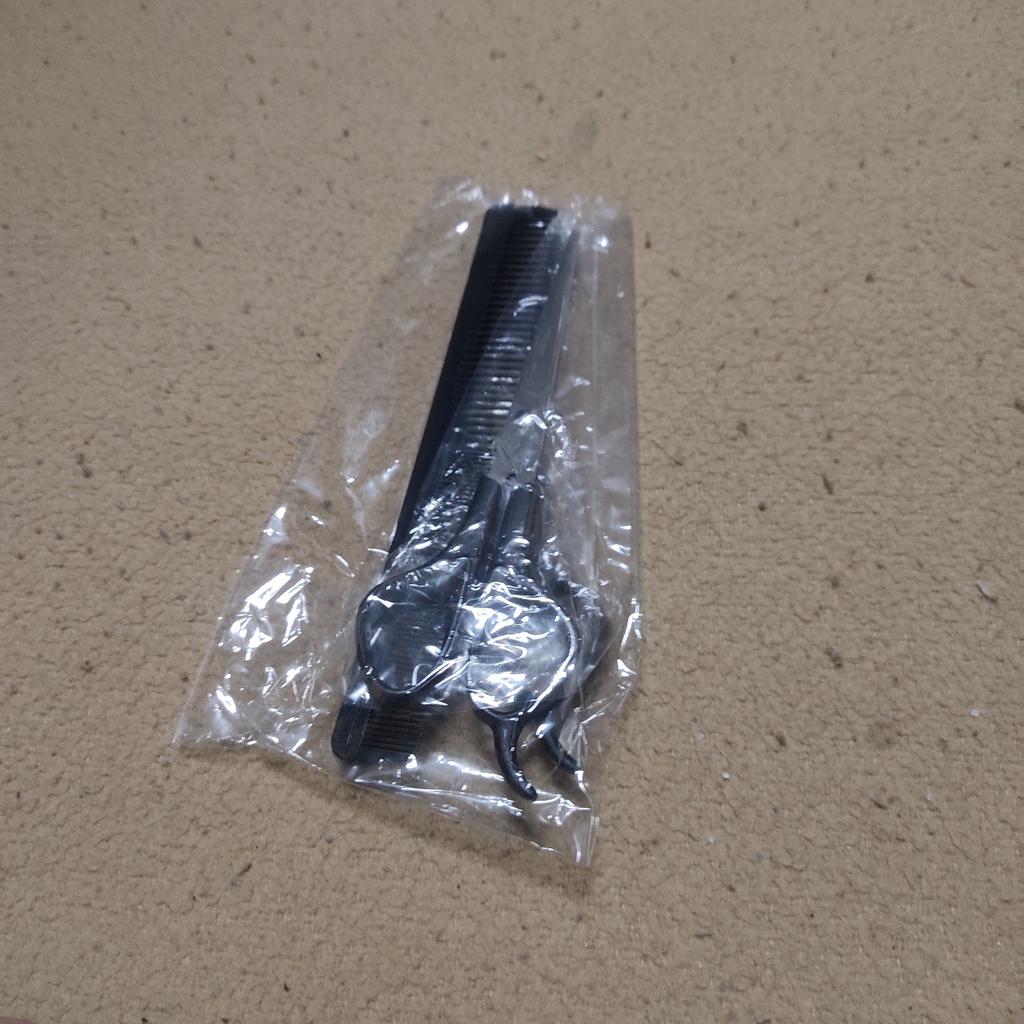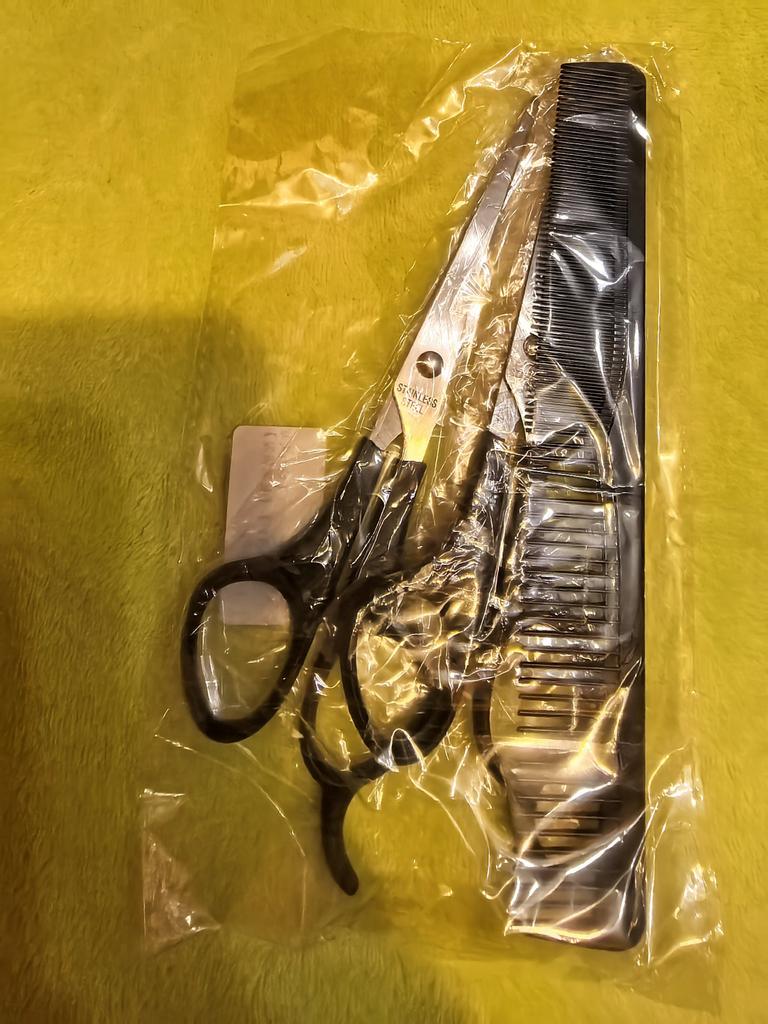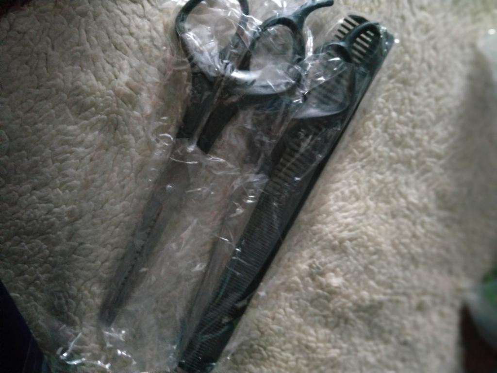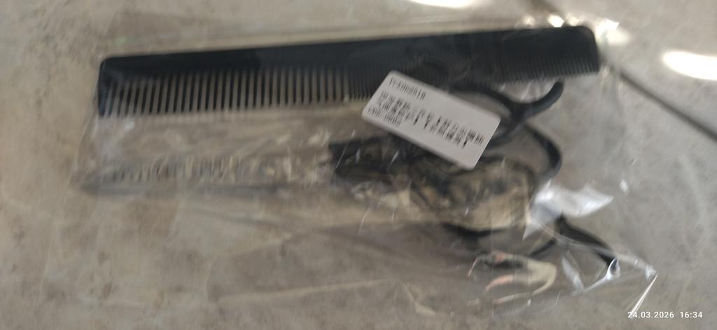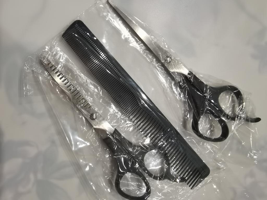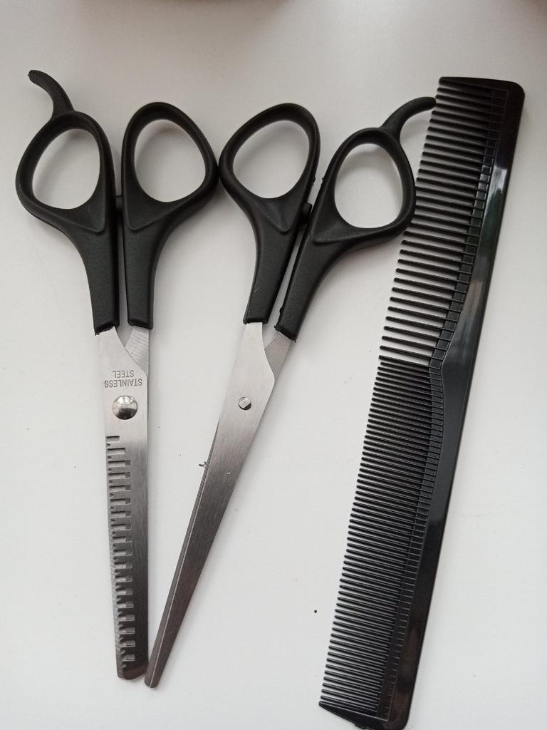 Received the set: 2 pcs. scissors + comb. Haven't tried it yet.