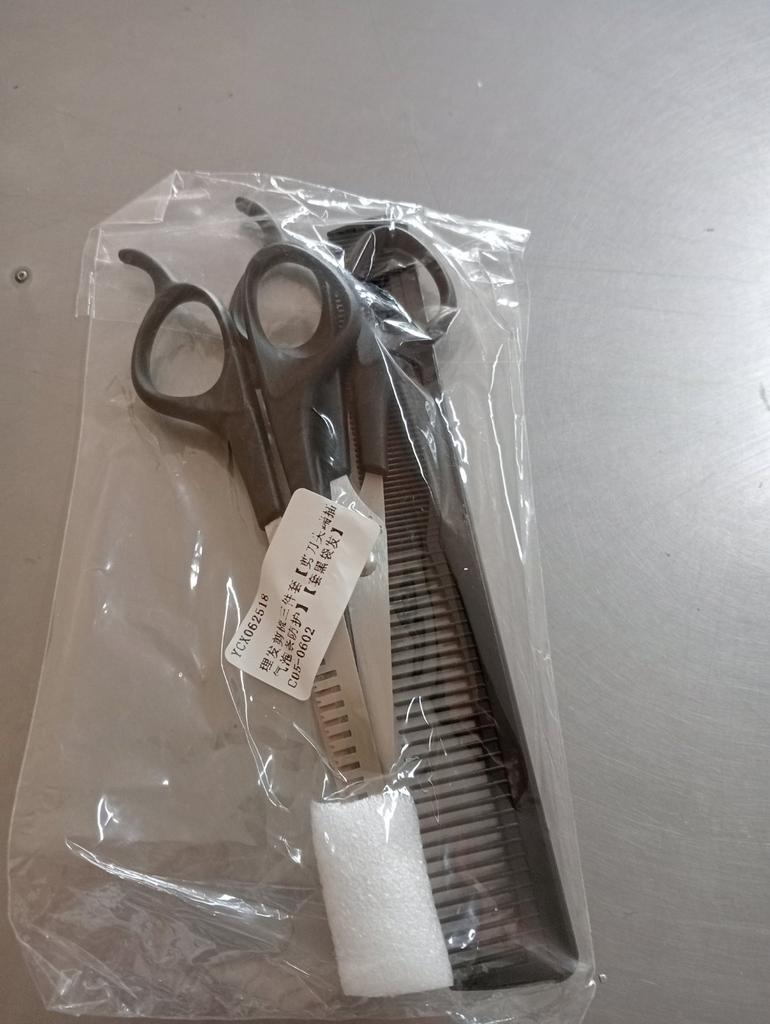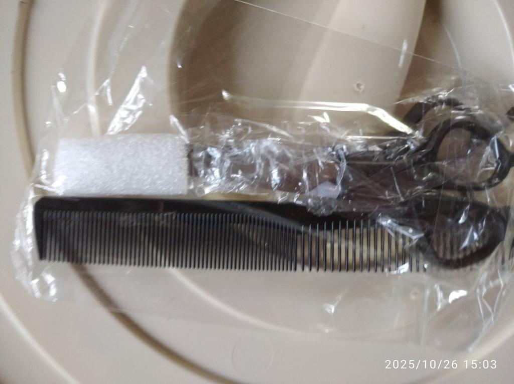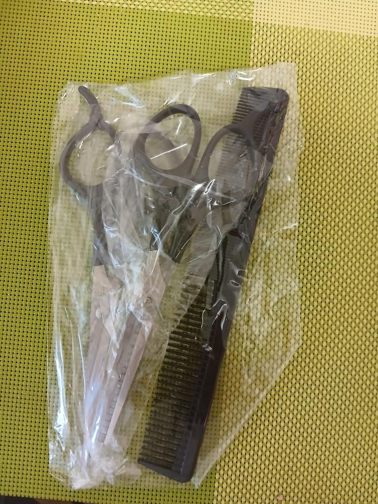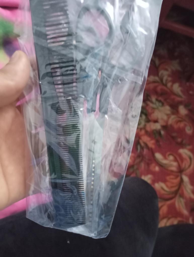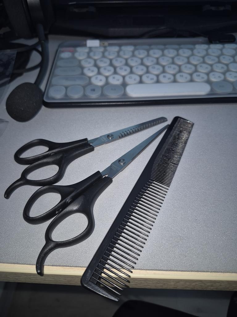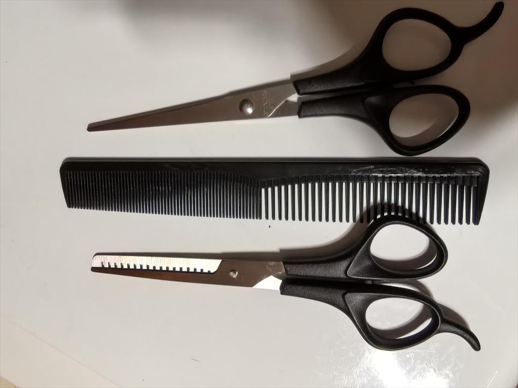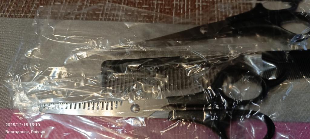 Received the set: 2 pcs. scissors + comb. Haven't tried it yet.
