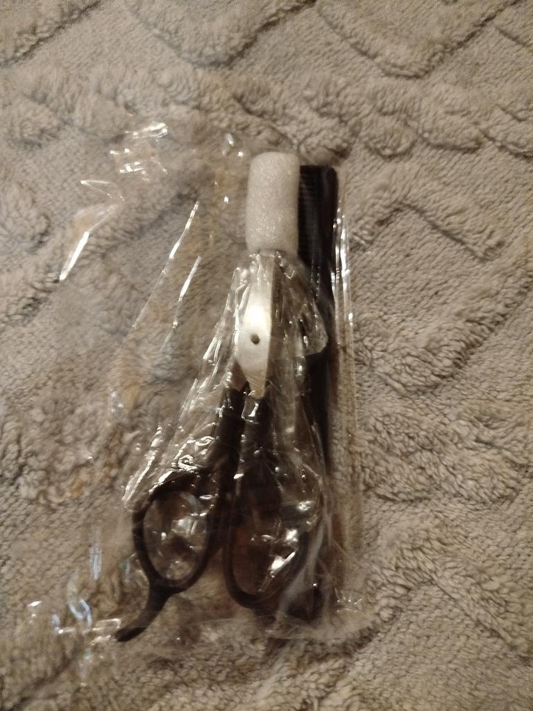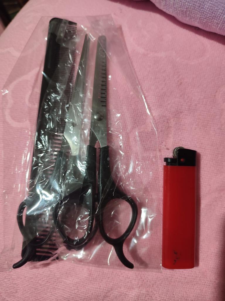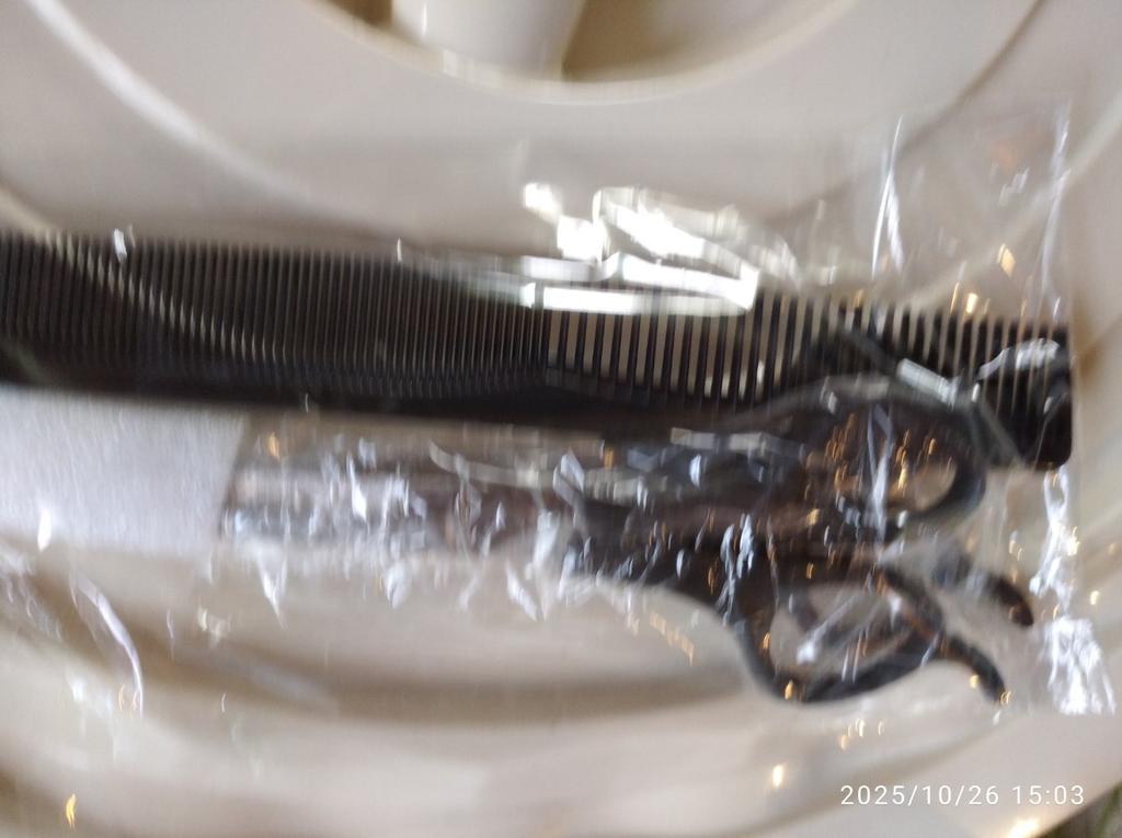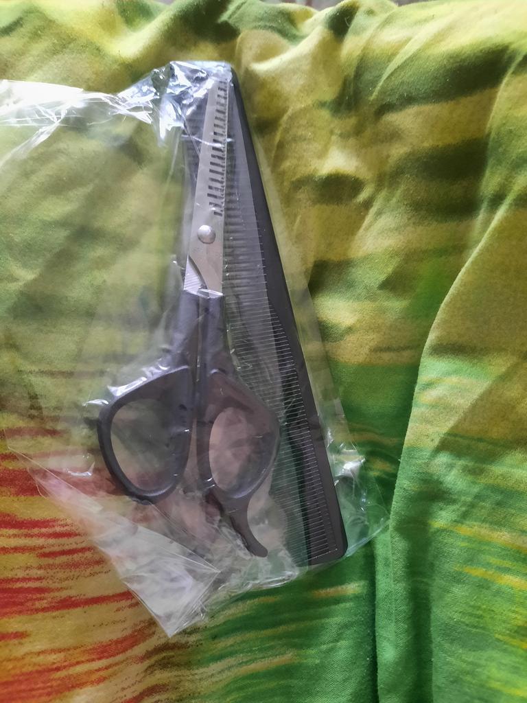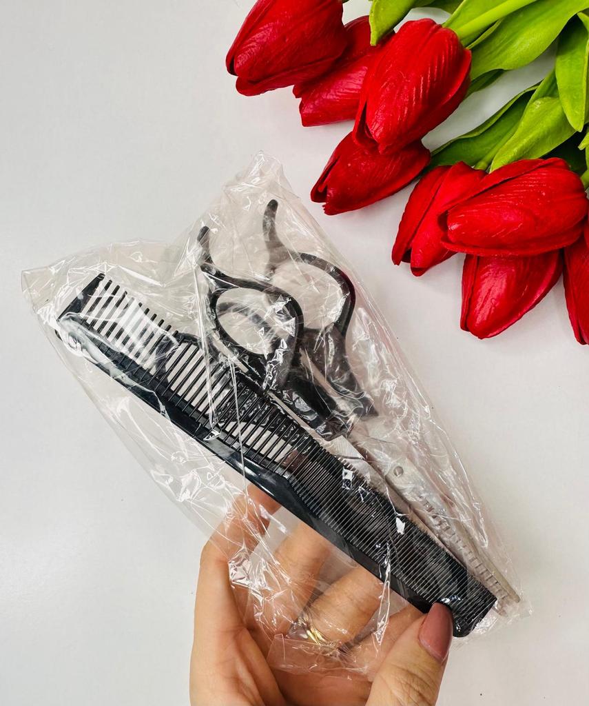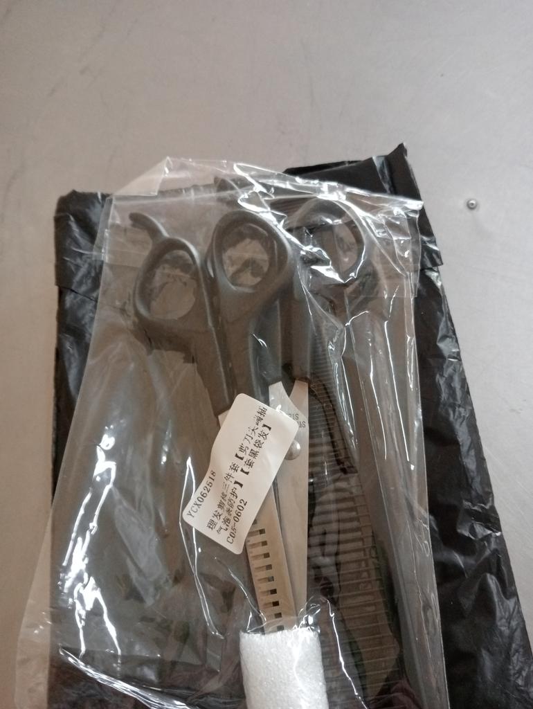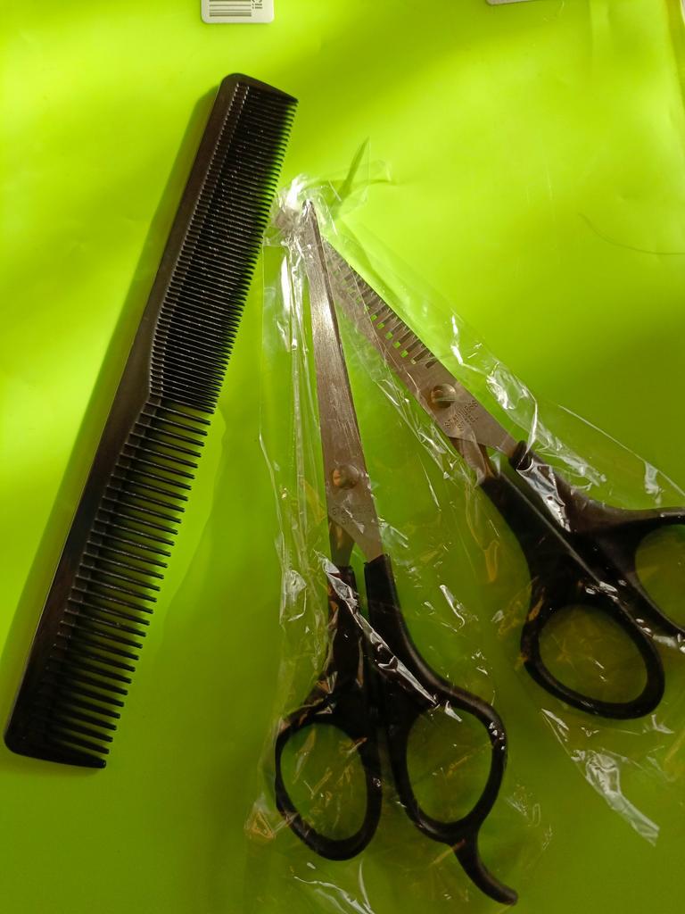 Received the set: 2 pcs. scissors + comb. Haven't tried it yet.