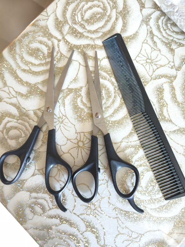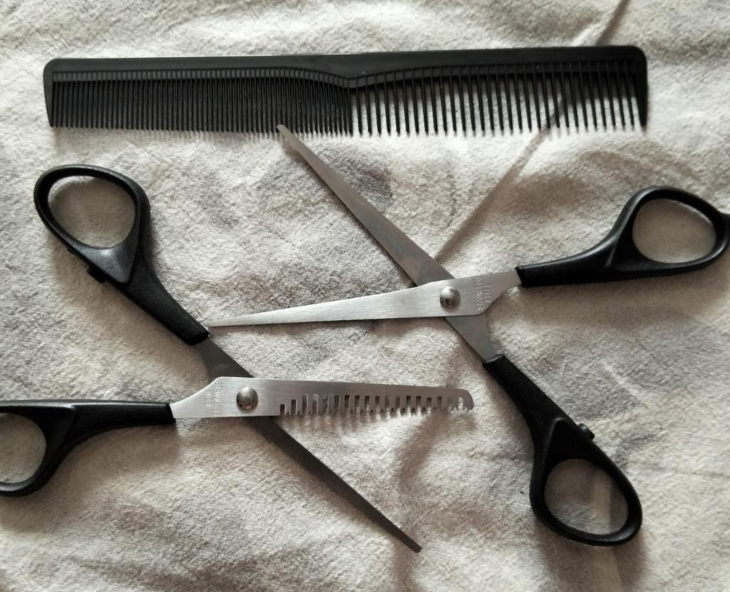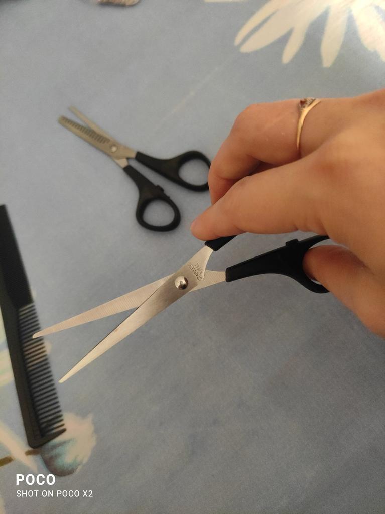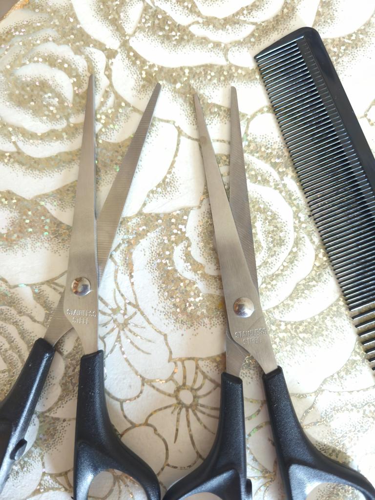 Sharp scissors. A set for cutting hair at home is just the thing.