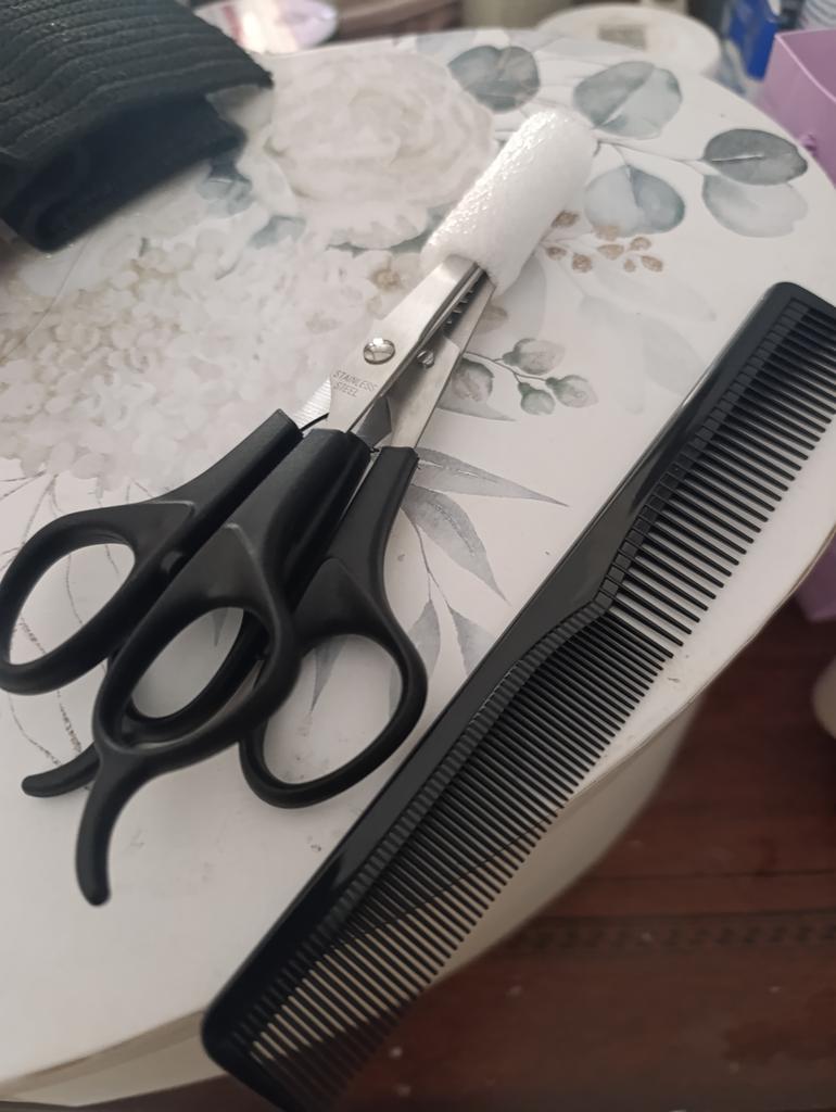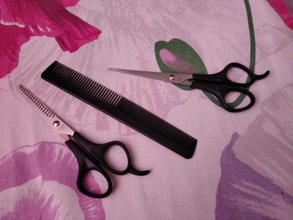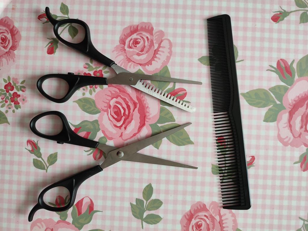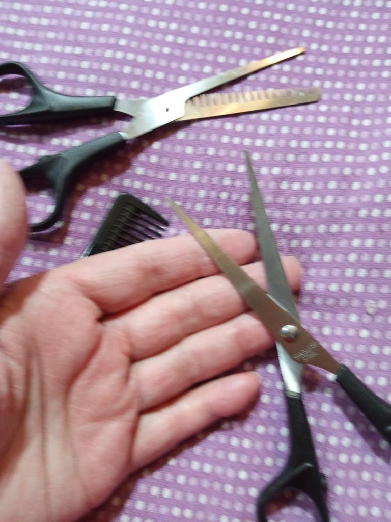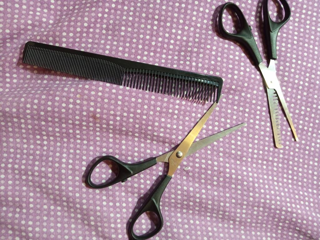 Sharp scissors. A set for cutting hair at home is just the thing.
