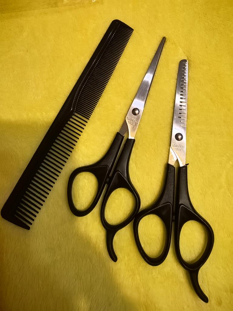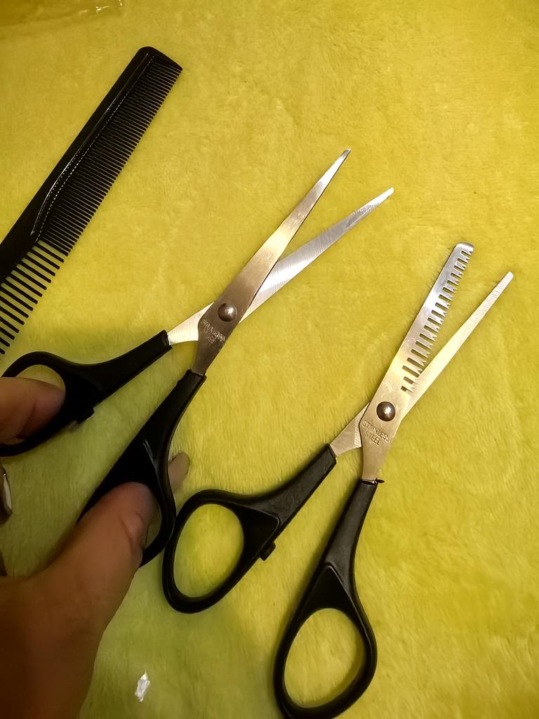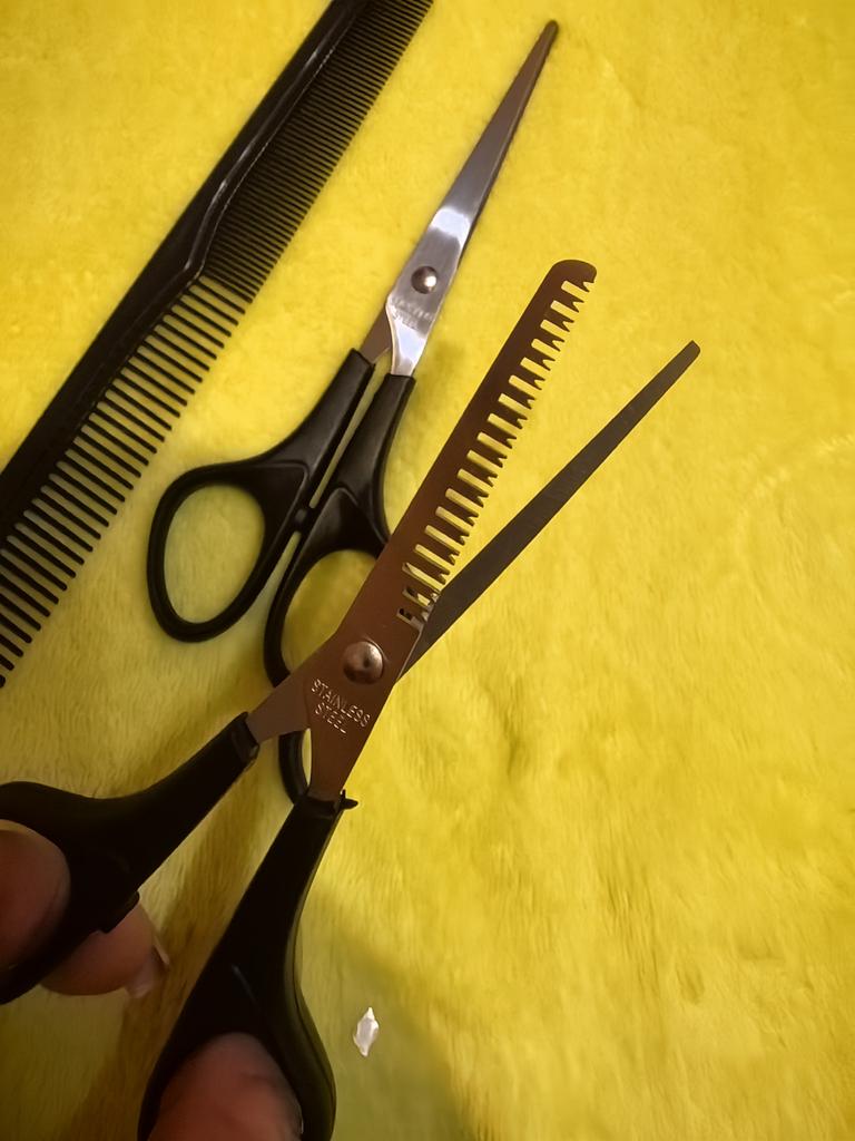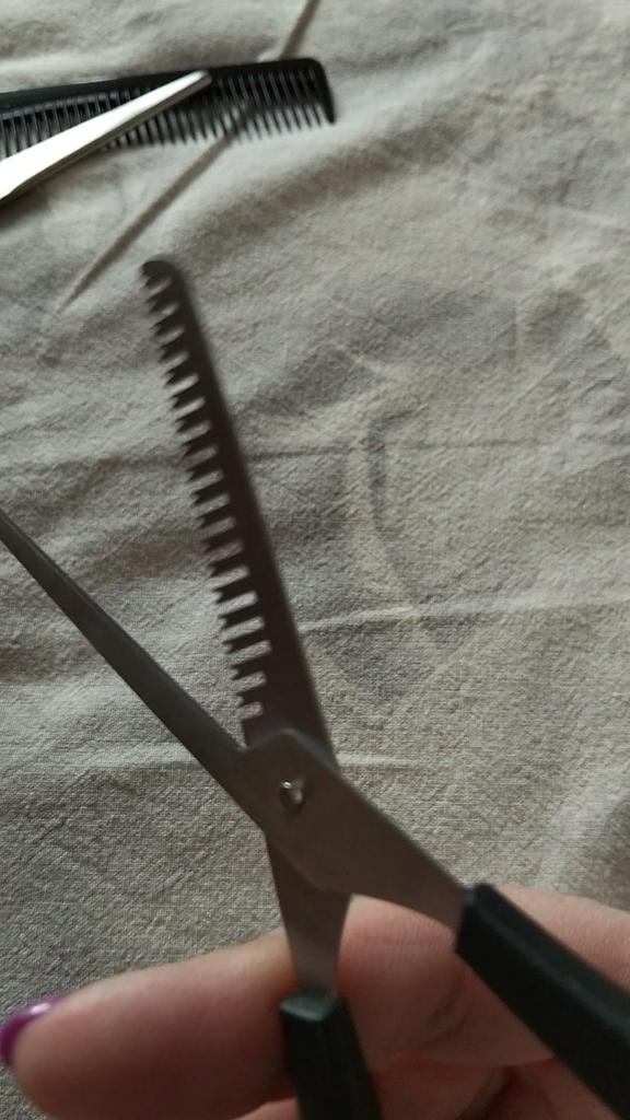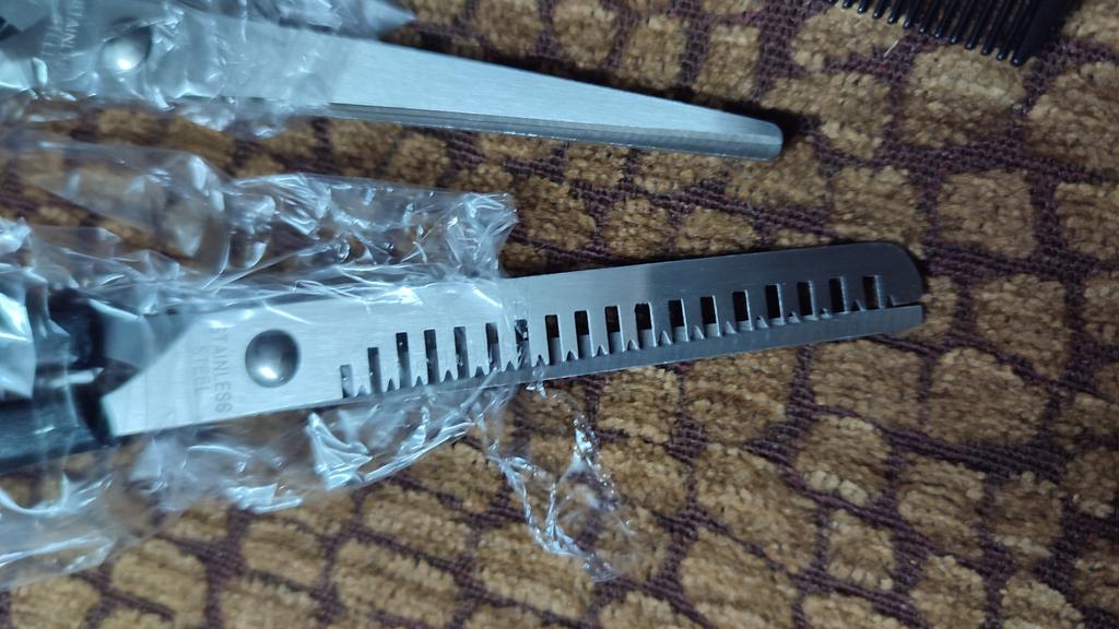 The quality is not very good, the thinning scissors don't cut at all, they bite the hair. We will use a comb and just scissors to cut threads. They are not suitable for hair.