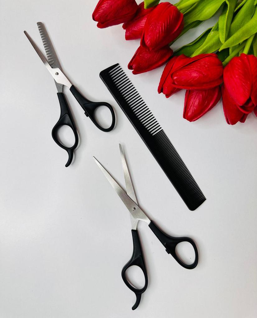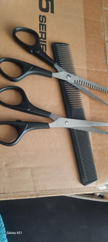 Excellent hairdresser set, 2 scissors and a cutting comb.