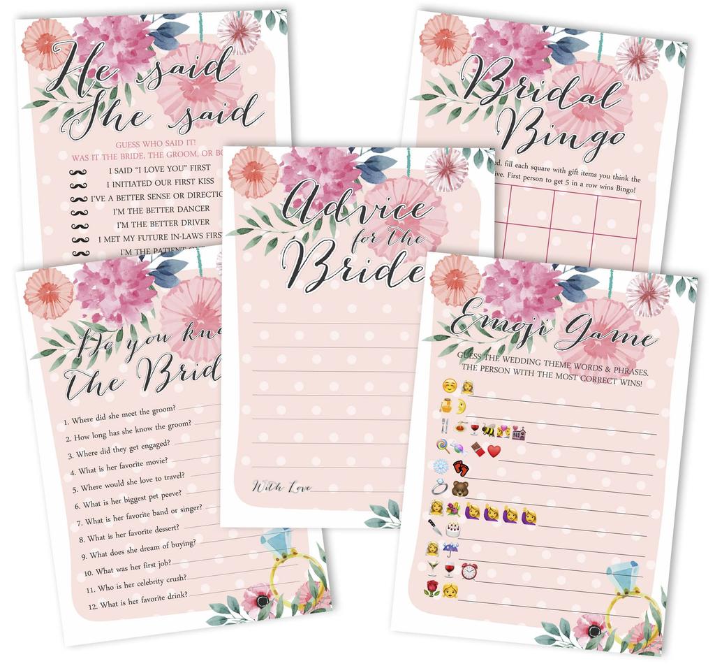 Inkdotpot Floral Theme Bachelorette Party Games Set of 5 (Activities for 50 Guests) Fun Bridal Shower Games Set Bundle
