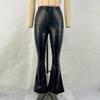 Women's High Waisted Glossy Leather Pants Black Flared Trousers