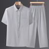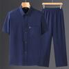 Men's Summer Comfortable Suit Middle-aged and Elderly Solid Color Simple Short-sleeved Shirt + Casual Pants Two-piece Set