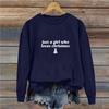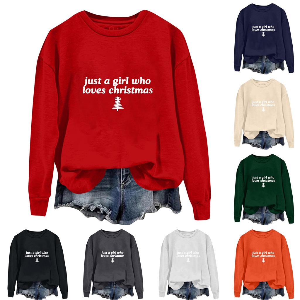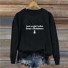 Women's Casual Loose Solid Color Christmas Letter Printed Round Neck Long Sleeved Sweatshirt