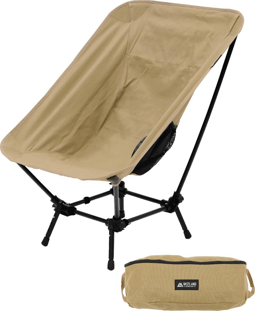VASTLAND Camp Fit Chair Standard Type 4 Height Adjustable Folding Camping Chair Low Chair Canvas Cotton Bonfire Tan