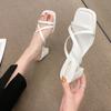 Korean Version Thick Heel High Heeled Sandals Female 2024 New Fashion Casual Simple All-match Square Toe Slippers Summertime