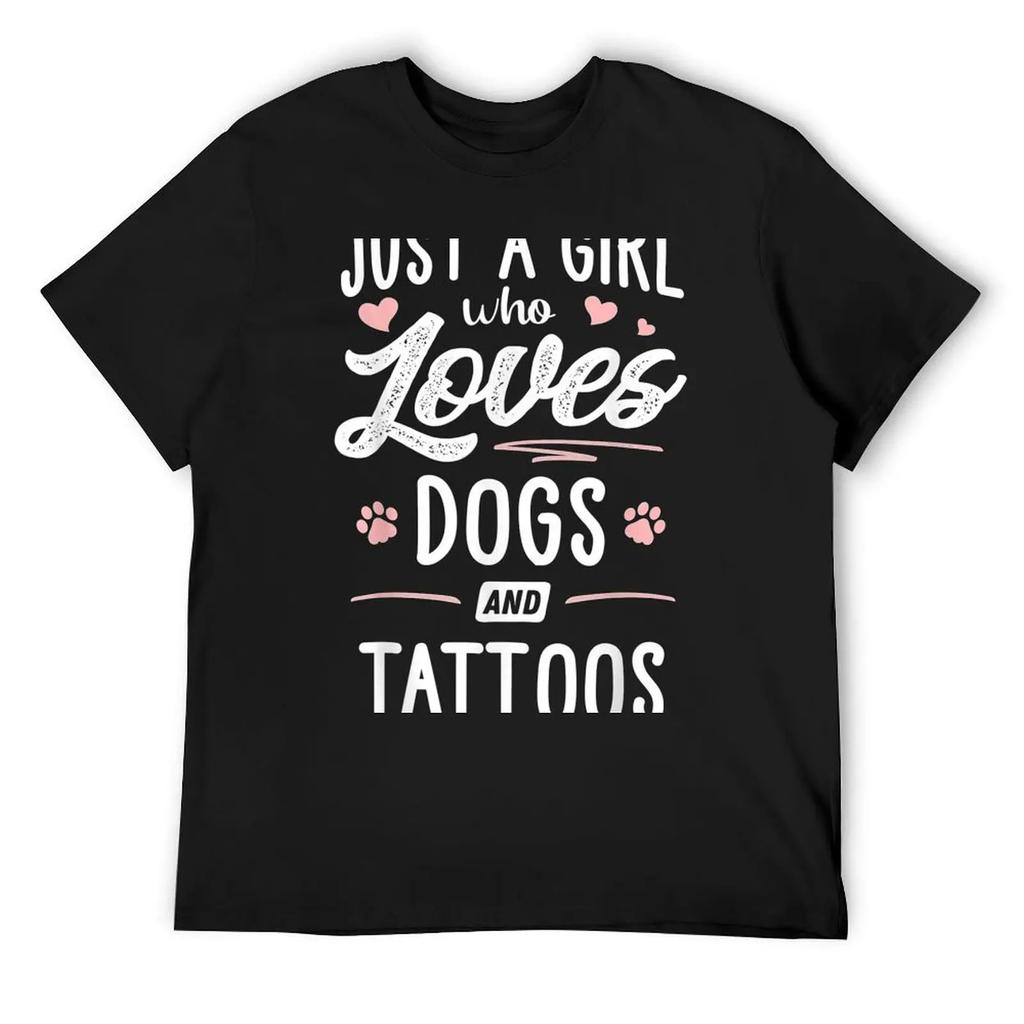Just A Girl Who Loves Dogs And Tattoos Gift Dog Lover T-Shirt Summer Top Shirts Graphic Tees Tees Vintage Graphic Tee Men Tshirt