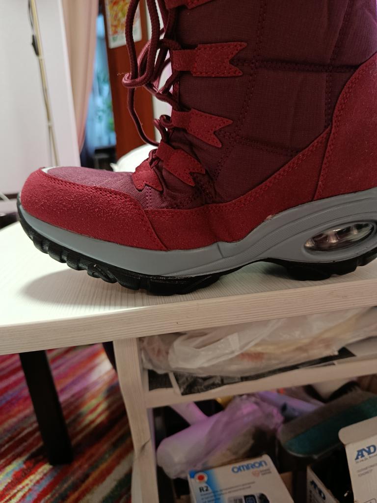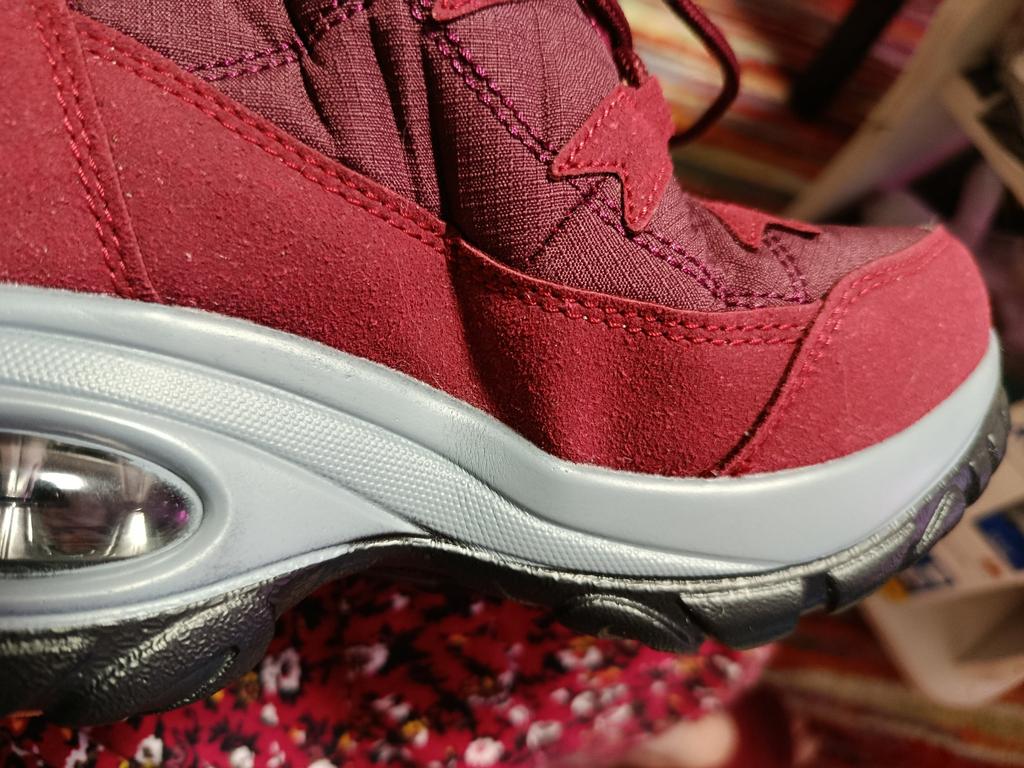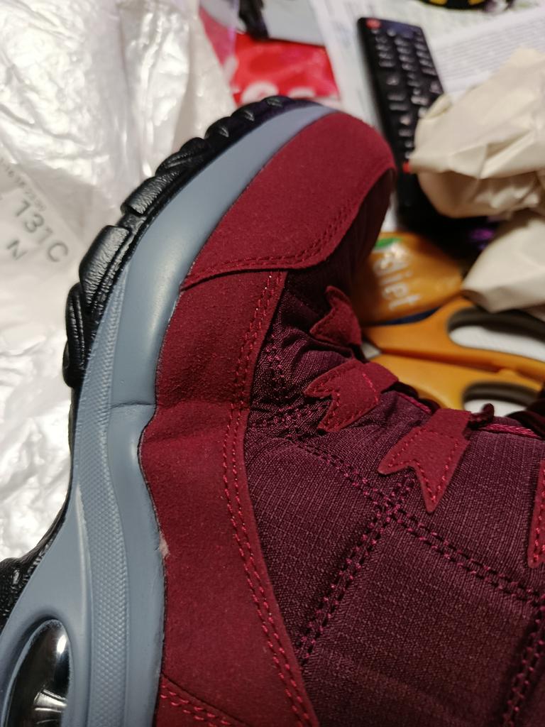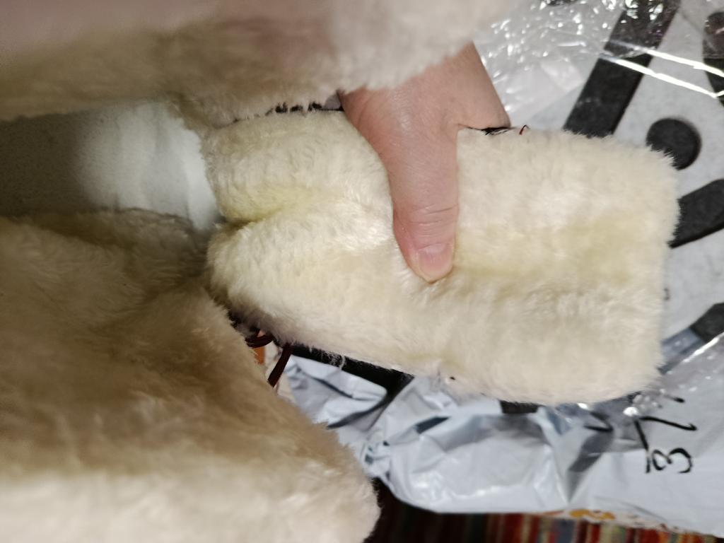 The left boot has a crease along the sole, possibly with a crack inside as well.