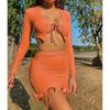 Autumn/winter Women's Sexy Flounce Lace Up Pleated Two-piece Skirt