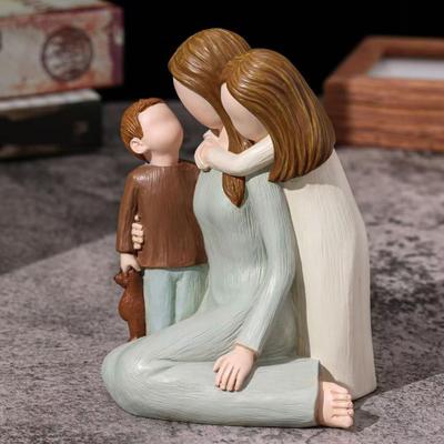 Mother And Kids Figurine Hand-Painted Mother And Two Children Statues Resin Mother Son Daughter Sculpture Gift for Mother's Day Birthday Anniversary