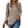 YYFS Women's Fashion Casual Spring Fall Solid Color Print Long Sleeve O-Neck Blouses & Shirts