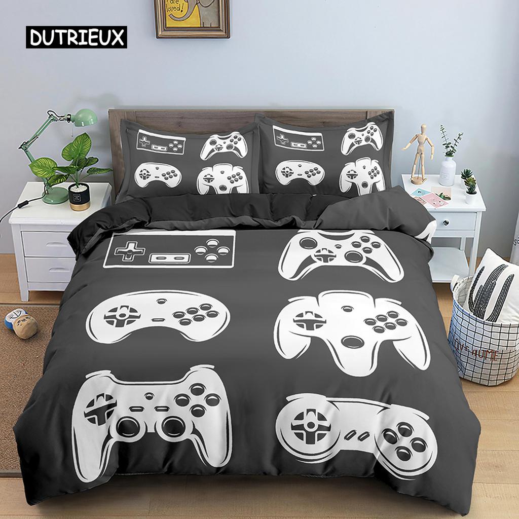 Teens Video Games Comforter Duvet Cover King Gamepad Controller Bedding Set for Kids Boys Girls Youth Game Polyester Bedding Set