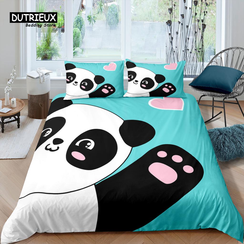 Home Living Luxury Cartoon Panda Bedding Set Hearts Duvet Cover Pillowcase Queen and King EU/US/AU/UK Size Comforter Bedding