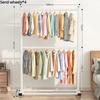 Simple Rolling Clothes Rack Floor Hanger Large Assembled Wardrobe Shoe Shelves Double Layers Coat Hanger Stand Home Furniture