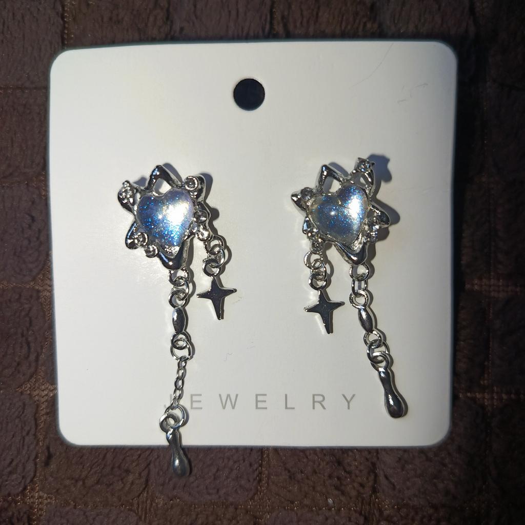 Korean Silver Color Long Tassel Heart Dangle Earrings for Women Teens Sweet Cool Star Pendant Drop Earring Jewelry Accessory