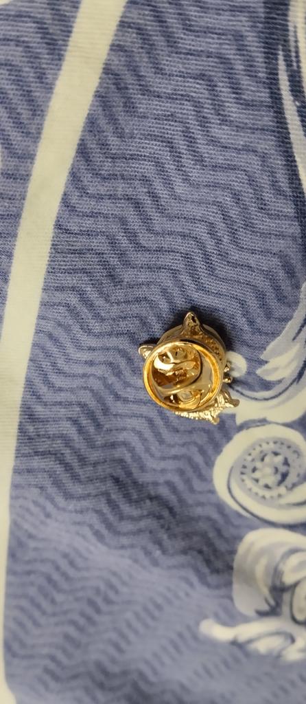Very tiny, about one centimeter including ears and tail, a button cat for the corner of a shirt collar, and you won't notice it unless you look closely.