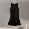 Elegant Feather Patchwork Short Party Dress Women Slim O-neck Sleeveless High Waist Female Dresses 2025 Lady Sexy Evening Dresses