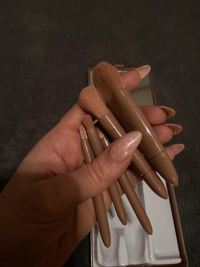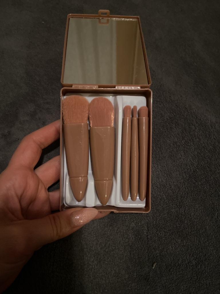 Mini size make up brush setπππ«Ά Delivery times: ππβοΈβοΈβοΈ15 days in Italy. Scope of delivery: Delivery includes 2 foundation or blush brushes and 3 eye brushes. The quality of the brushes is not excellent but it must be said that the set can be very convenient for a trip. In a convenient container with mirror there are 5 brushes that are easy to use and very small The color is exactly as in the photo.ππ πππππ. The brushes are light and have no unpleasant chemical odors. SUPERIOR!!! I am very satisfied with my purchaseπ The product is ideal for travel β οΈβοΈπππPerfect!π Summaryβ οΈ: Very nice and lightweight brushes ideal for a short trip Thanks joom and the seller πππ 5 stars π π π π π
