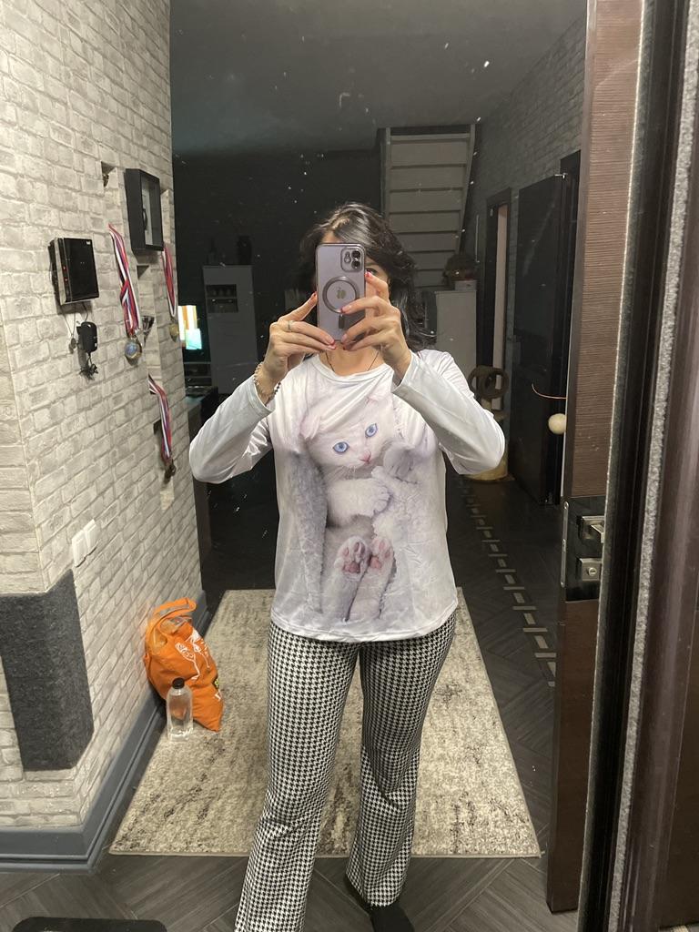 Kawaii Cat Women's T Shirt 3D Print Casual Long Sleeve Tees Oversized Harajuku Sweater Clothing Daily Blouse Female Loose Tops