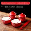 Chinese Wedding Tea Set Red Wedding Bowl Chopsticks Covered Bowl Toast Change Tea Set Solid Wooden Tray Wedding Supplies