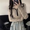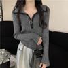 Women's Autumn and Winter Base Knitted Blouse with Color-Blocking Design Half-Zip Turn-Up Collar Slimming and Figure-Highlighting