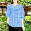 ZANZEA Women Summer Round Neck 3/4 Sleeve Plaid Blouses