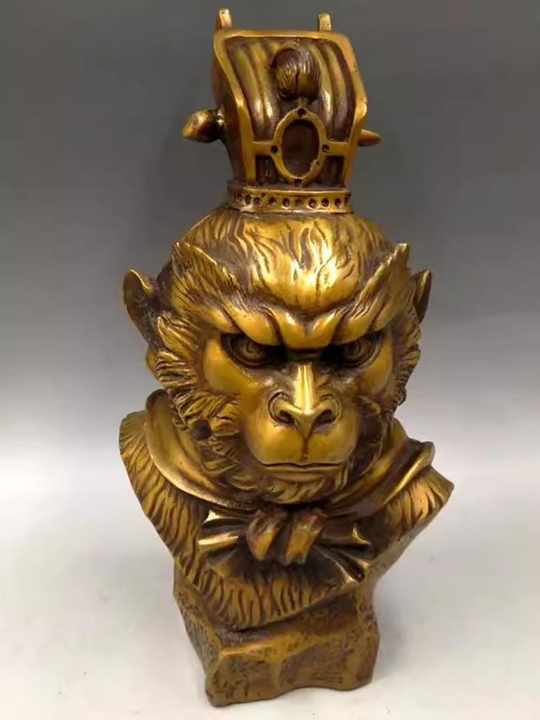 China Hand Carved Bronze Folk Sun Wu Kong Monkey King Head Bust Sculpture Statue Modelled After an Antique