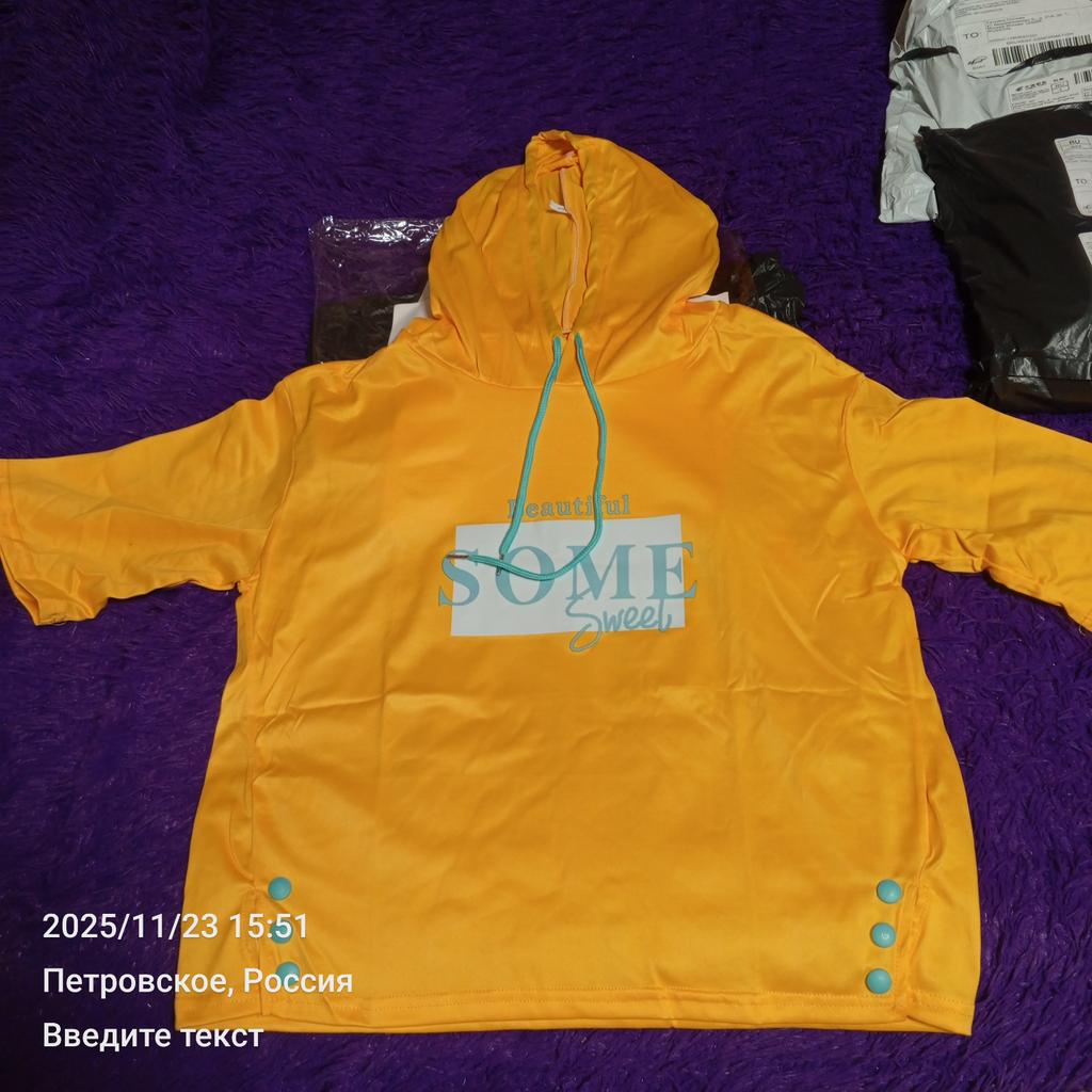 nice thin hoodie, nice fabric, small decorative hood, short as stated, size XXL, just right for my size 48