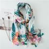 Tropical Rose Red Cotton-Linen Scarf with Tassels - Beach Towel for Women