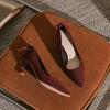 Women's High Heel Bow Shoes - Wine Red/Black (Autumn/Winter Collection)